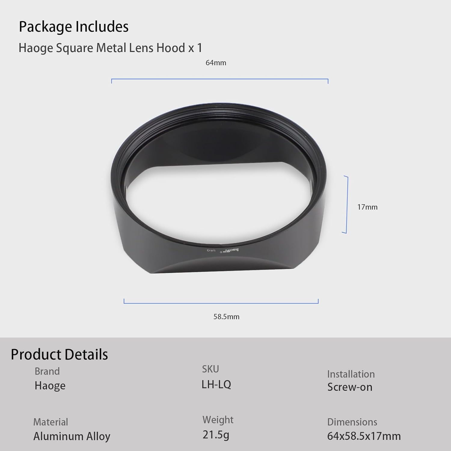 Haoge Square Metal Lens Hood for Leica Q3 Q3-43 Camera Accessories Black LH-LQ343B