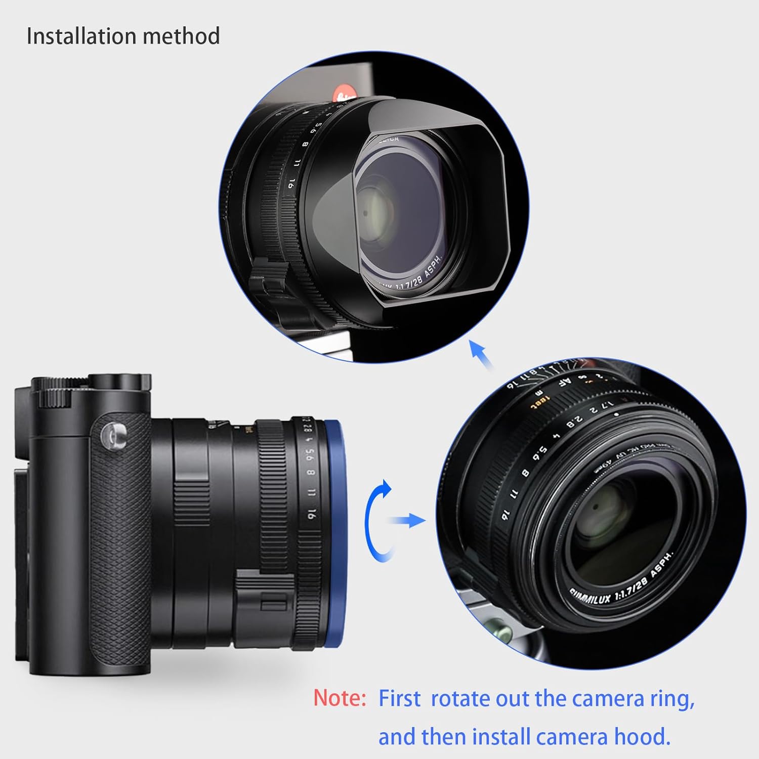 The LH-LQ343B Metal Square Lens Hood is designed for Leica Q3 Q3-43 Camera. It shades the lens from stray light, prevent or limit lens flare, improving your contrast and image quality. Provide additional protection to the camera and lens from accident scratching.