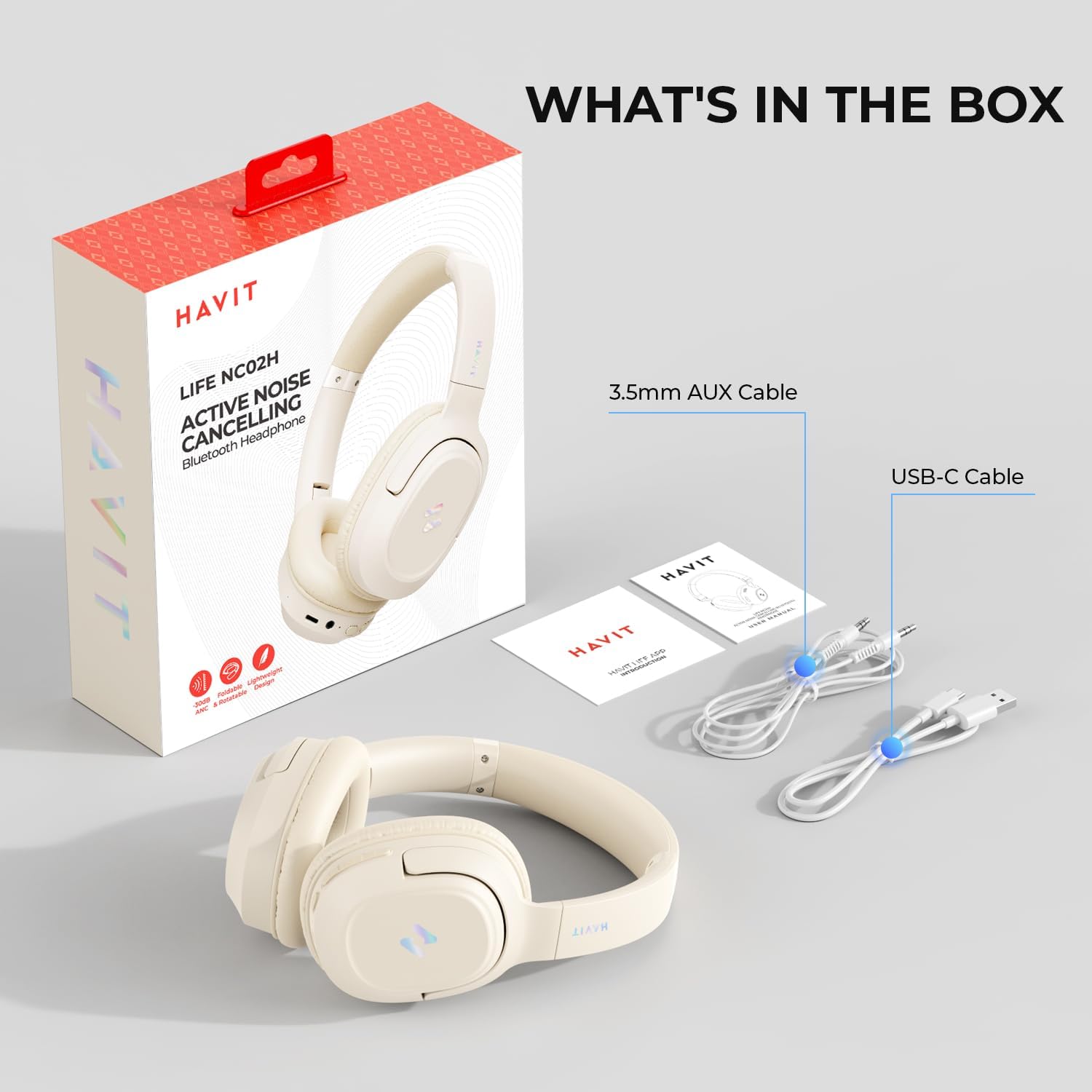 ✨ Items Delivered: 1 x Havit Active Noise Cancelling Headphones, 1 x Type-C charging cable, 1 x detachable studio cable, safety sheet and quick start guide. If you have any questions or concerns while using our product, please do not hesitate to contact us