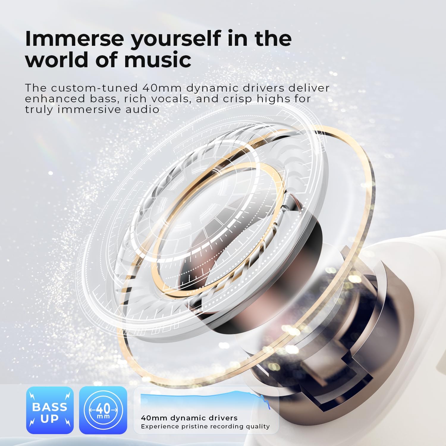 ✨ Lossless Clarity: These wireless headphones deliver thunderous bass, razor-sharp highs, and immersive detail through precision-tuned 40mm drivers. Surrender to Zero-Compression Audio, where BassUp technology and customizable EQ unlock every nuance from whispered lyrics to earth-shaking beats with studio-perfect accuracy