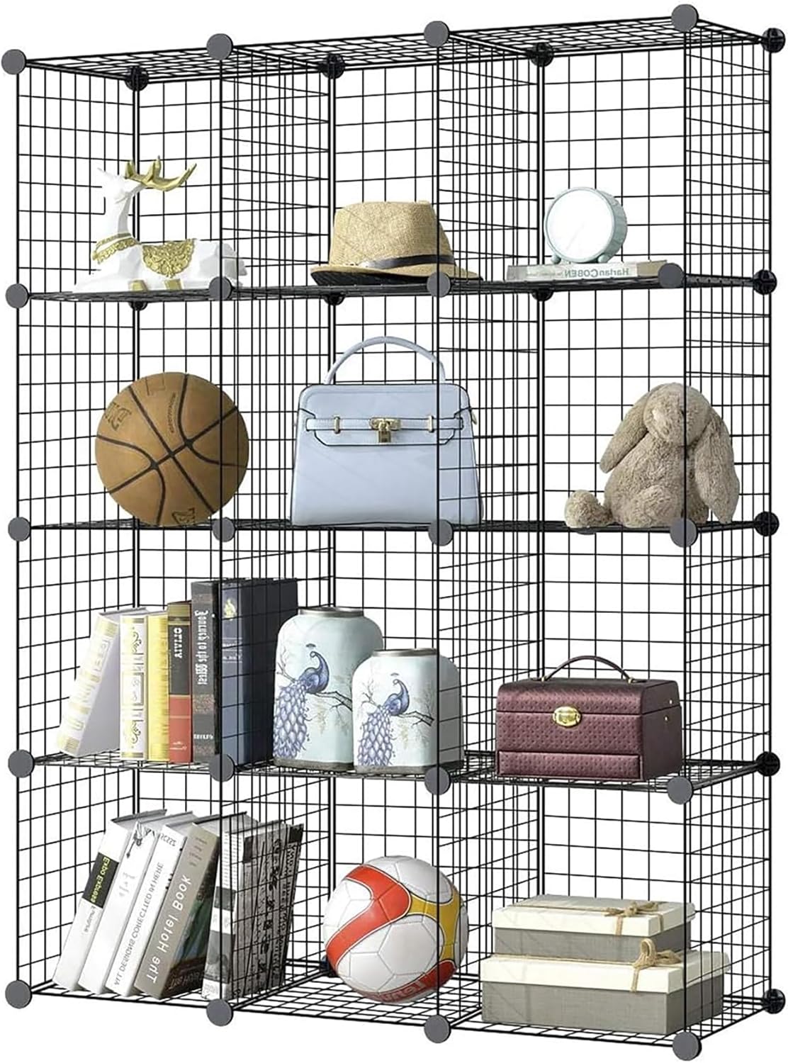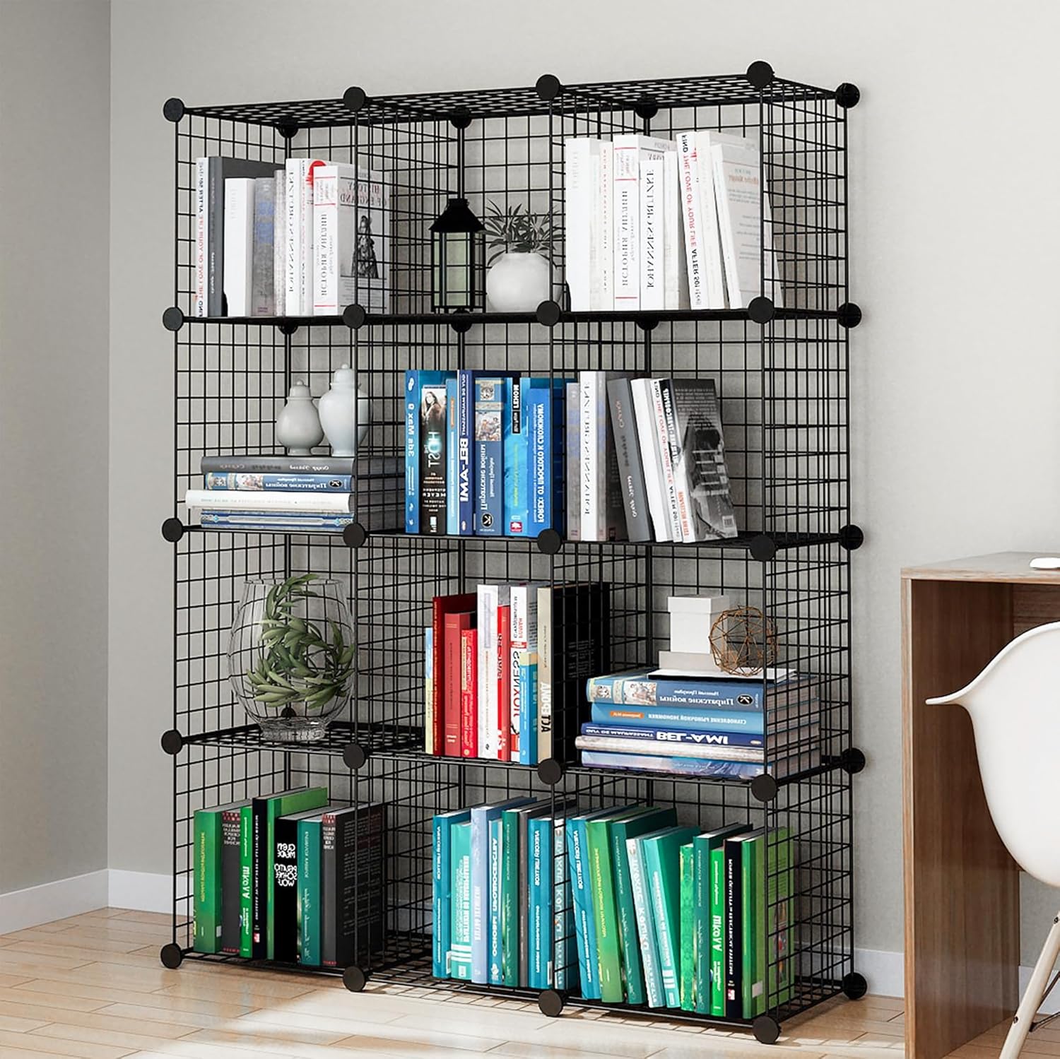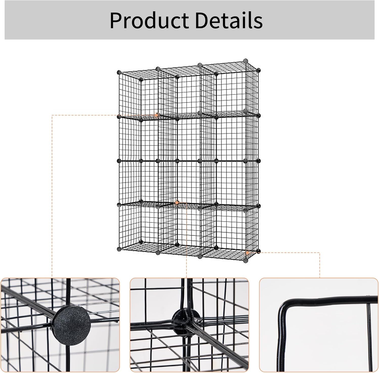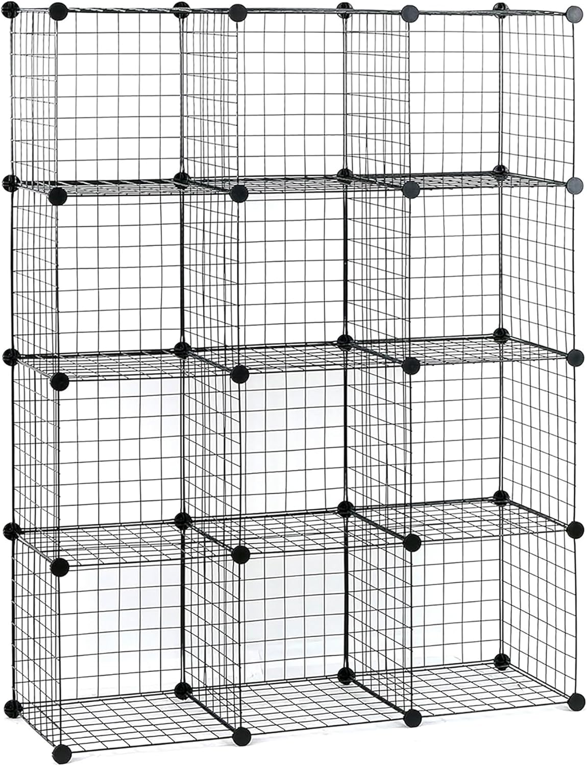 Hawthyhome Cube Storage Unit, 12 Cube Wire Storage Shelves Set, Multifunctional DIY Bookcases and Shelving Units Perfect for Office/Livingroom/Kitchen/Bathroom, Black (48″x35.83″x12.20″)