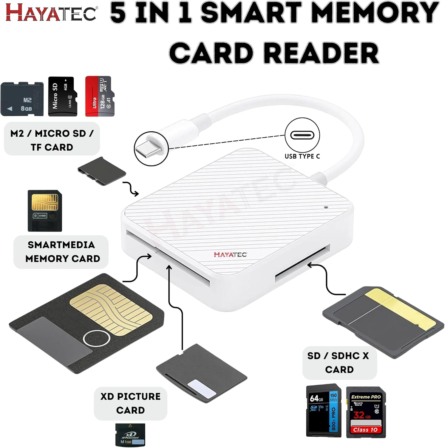 HAYATEC Smart Media SM Memory Card Reader TYPE C USB XD M2 SD SM for Cameras Supports Card TYPE C