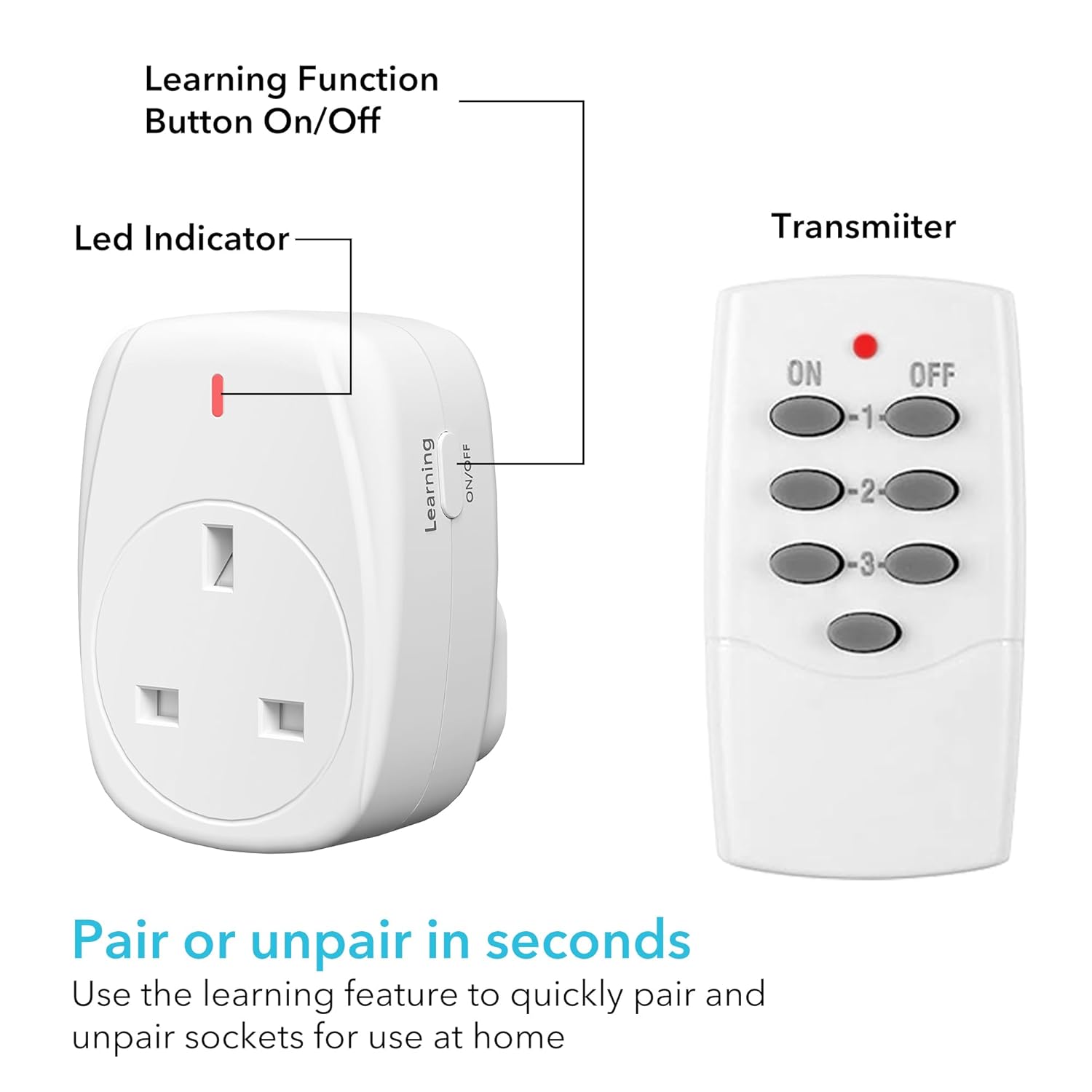 Learning Function- Any one HBN brand transmitter and socket can be programmed with each other, so extra HBN brand sockets and remote controls can be matched to existing unit.