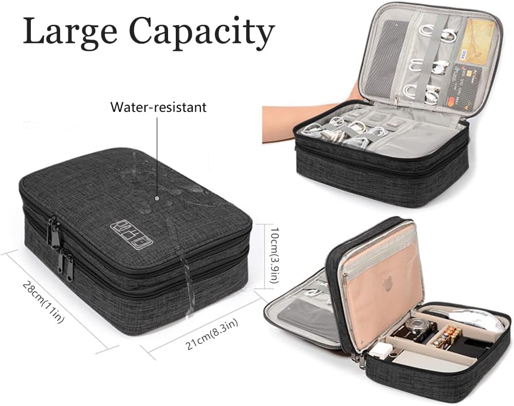 I recently bought the HCFGS Travel Cable Organiser Bag, and it’s fantastic! The extra-large, 3-layer design is perfect for keeping all my gadgets and accessories organised. It easily holds my power bank, cables, chargers, and more, with plenty of compartments and elastic loops to prevent tangling.The bag is well-made from durable materials, with smooth zips and a lightweight feel. It’s versatile enough for both travel and everyday use, helping me stay organised at home and on the go. The sleek black design looks professional and stylish.Overall, this organiser offers excellent value for money and has made my life much easier. Highly recommended!