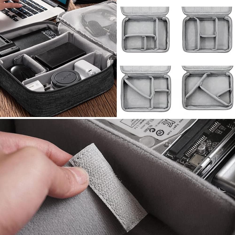 【 Easy to Adjust & Carry 】Four padded dividers of this travel cable organizer case allow you to customize the compartment. You could adjust them for your needs. It is a great electronics accessories organizer bag or computer cable organizer bag. Perfect for home use or travel