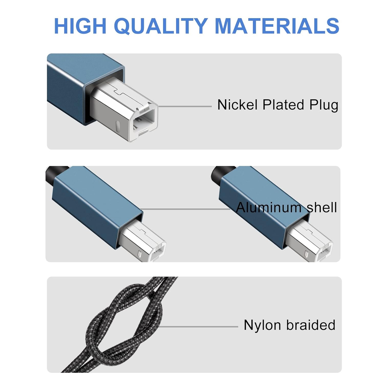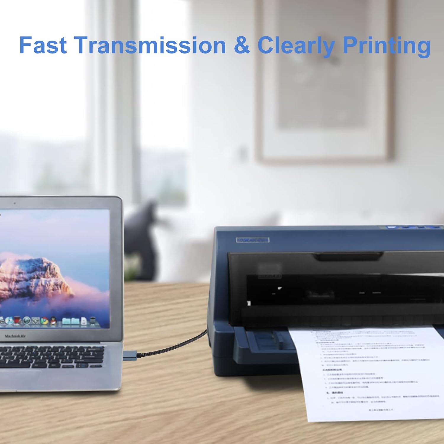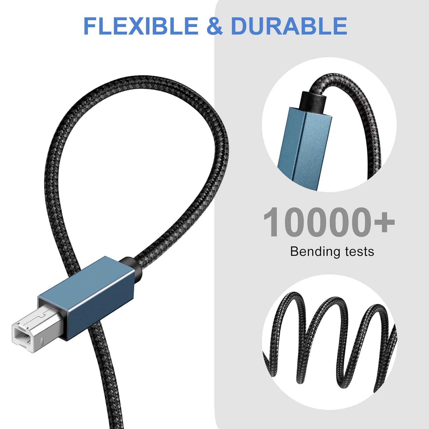 【Gold-plated Connectors】Constructed with corrosion-resistant, gold-plated connectors for optimal signal clarity and shielding to minimize interference.Also, This USB printer cable is built with nylon braided, making cables tangle-free and durable(20000+ bending test).