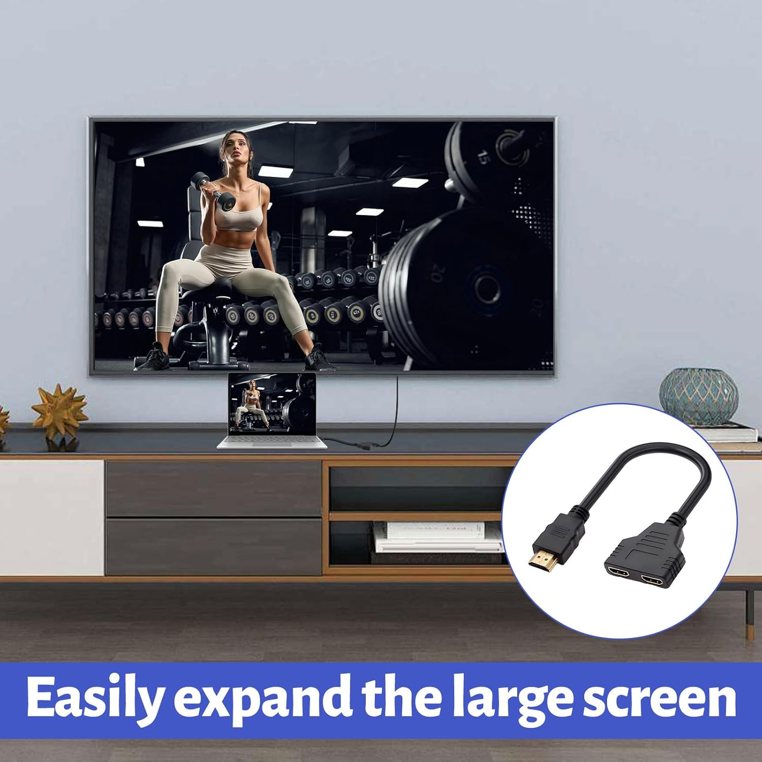 This double HDMI adapter for 2 monitors can connect HDMI-enabled devices such as HDTVs, DVD players, and LCD monitors to dual-output devices such as TVs, projectors, and plasma displays.