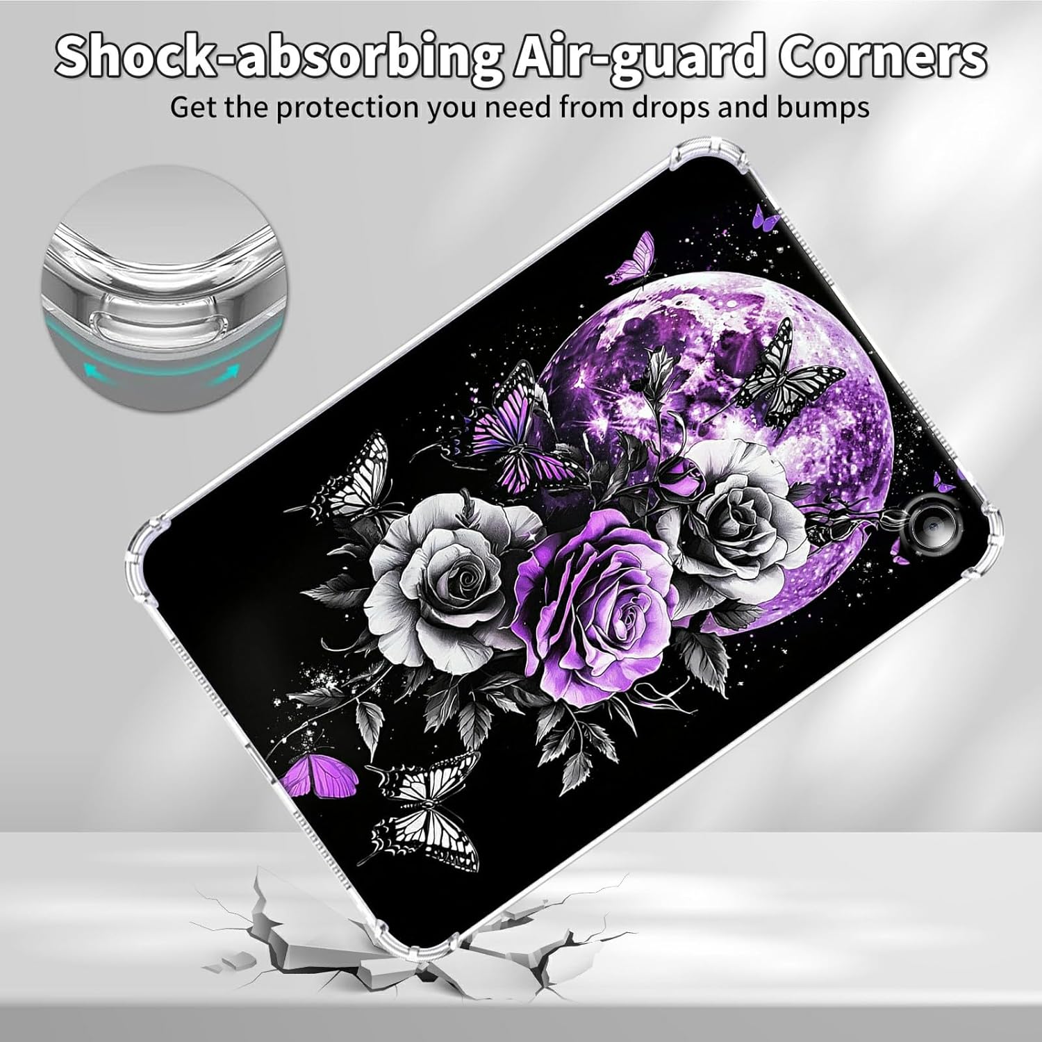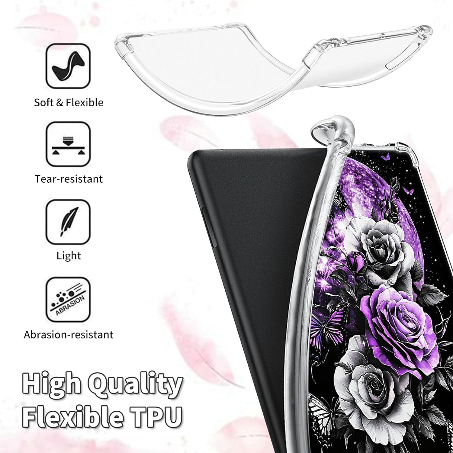 HEAKIERG Clear Case for All-New Amazon Kindle Fire HD 10 & 10 Plus Tablet (11th Generation, 2021 Release) 10.1″, Transparent TPU Silicone Protective Shell Shockproof Cover Case, Purple Moon Rose