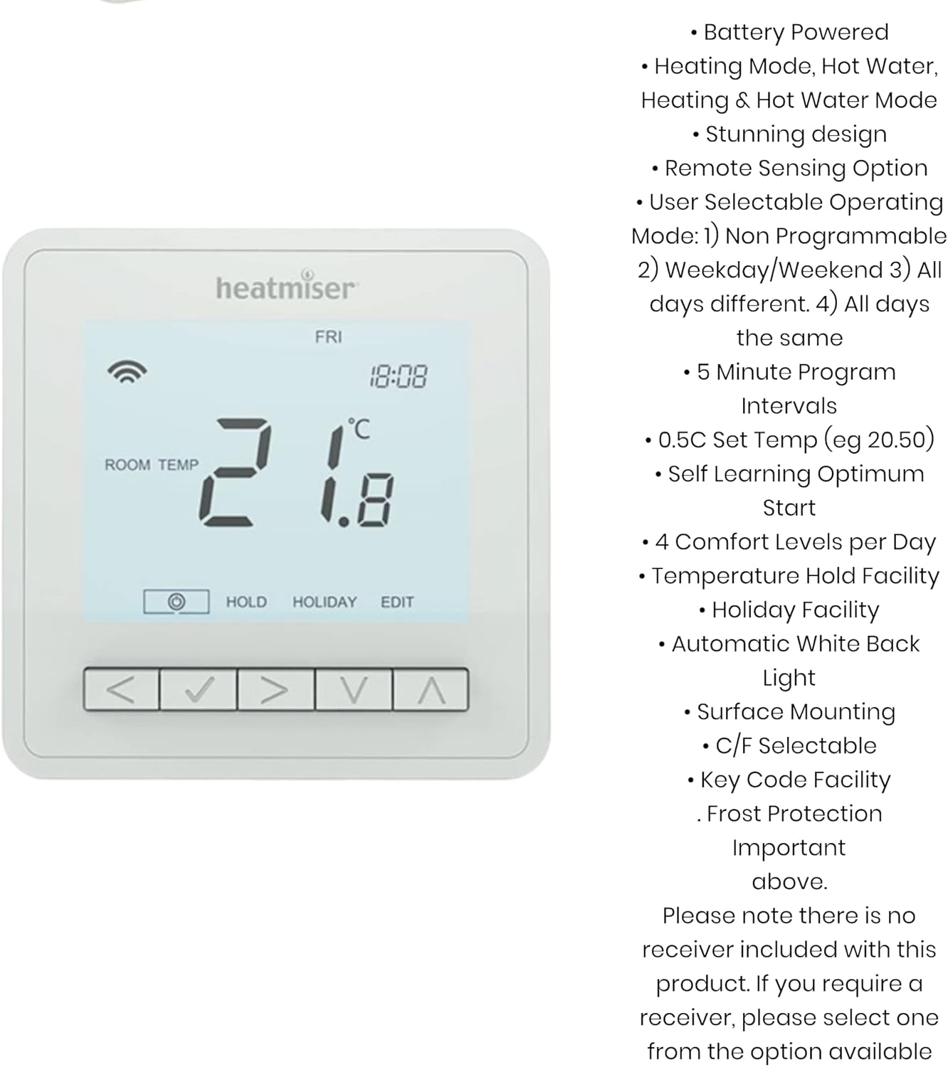 Works with Heatmiser RF Switch Receiver or UH8-RF Wireless Wiring Centre (Not included)