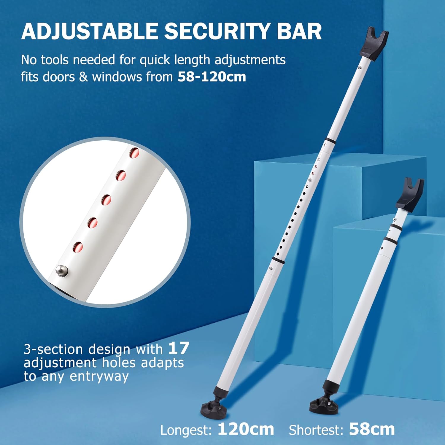 Heavy Duty Sliding Patio Door Security Bar, Adjustable 58-120cm Window Stopper Jammer for Home & Travel, Door Lock Stick Bar with Anti-Slip 360° Base Fits All Floors, Hotel/Apartment Safety Device