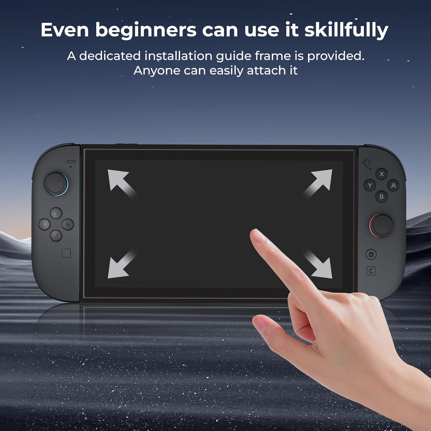 This screen protector is incredibly easy to install, even if you usually struggle with them.It comes with all the necessary wipes, ensuring a simple and bubble-free application. The protector keeps your Switch 2’s display looking clear while keeping it safe from damage.It is a highly recommended accessory for any switch 2 owner. My son is very happy!