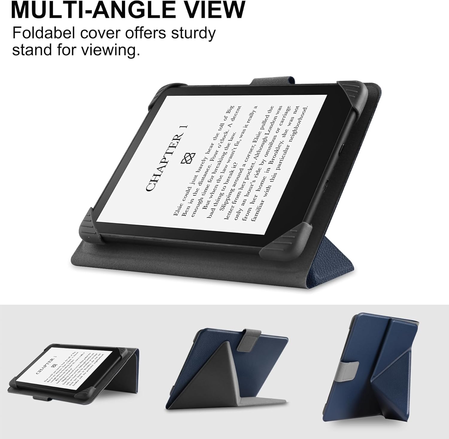HGWALP Universal Case for 6.8 Inch 7 Inch eReaders, Slim PU Folio Case Cover with Stand Compatible with 6.8 Inch 7 Inch Kindle Paperwhite/Kobo/Voyaga/Lenovo/Sony E-Readers-Navy