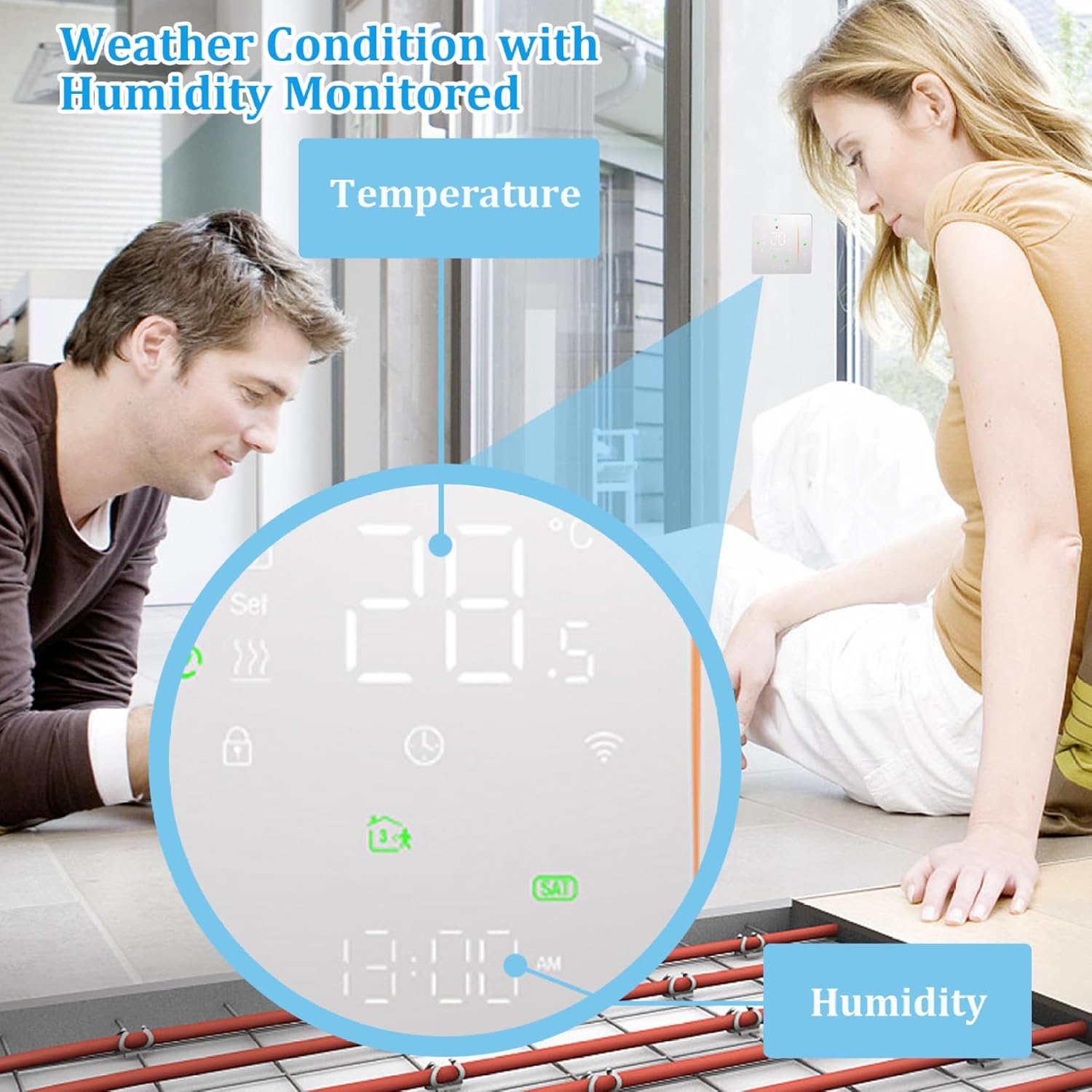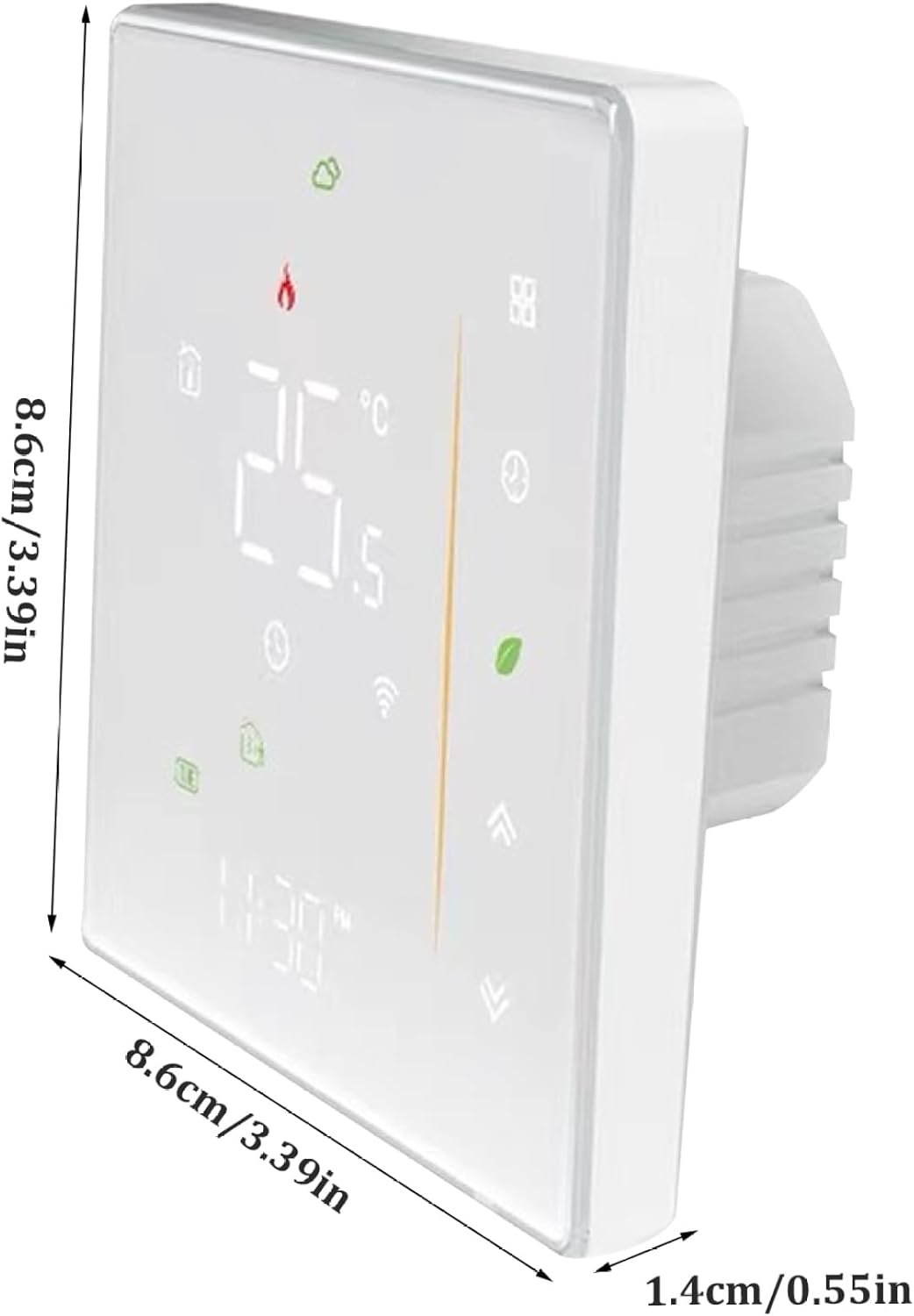 WiFi Connectivity and Compatibility: Equipped with WiFi capabilities, this thermostat integrates seamlessly into smart home systems, supporting compatibility with various platforms for comprehensive home automation and control.