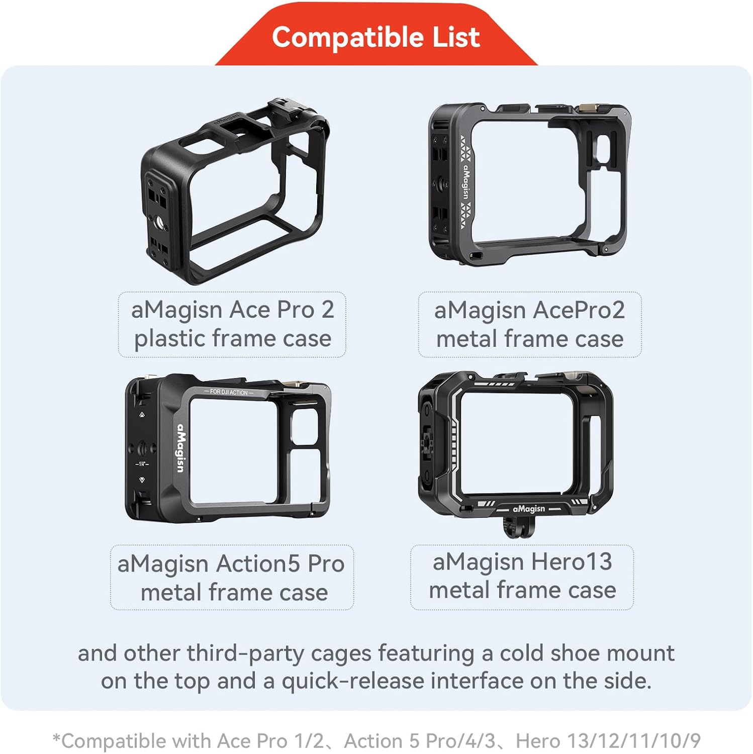 Suitable for AcePro 2, Action 5 Pro/4/3, Hero and all other action cameras. Two-claw quick release design, easy to install. Use two-claw quick release, official plastic two-claw quick release can also be used.