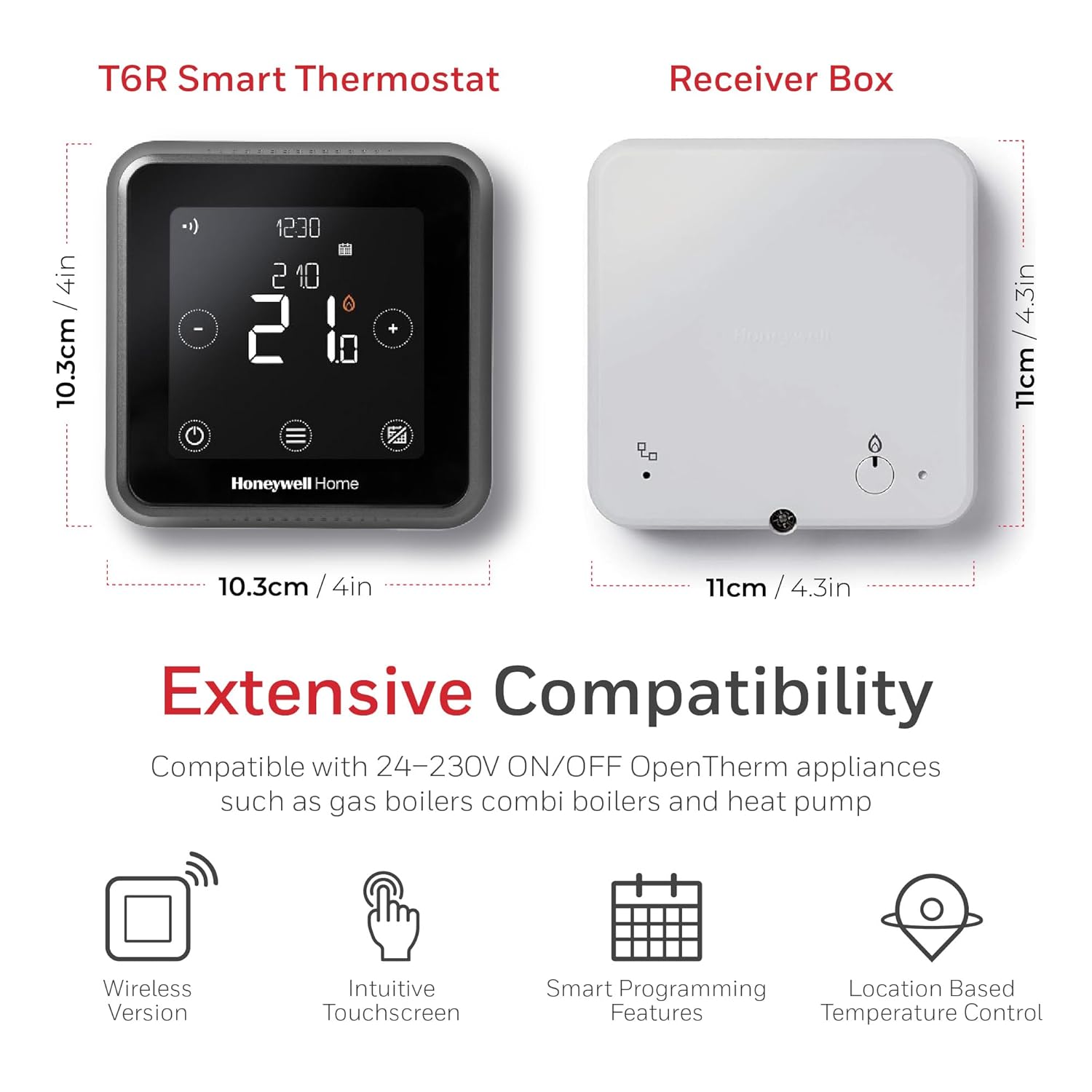 Is the T6R suitable for my property and will it fit my heating installation? The T6 and T6R Smart Thermostats are suitable for most water-based heating systems, including combination and system boilers, either gas or oil-fired. They can also be used as part of S-plan and Y-plan system. The T6R receiver module can be used with ON/OFF boilers and it has OpenTherm capabilities offering boiler modulation. Some boilers with modulation functions have restrictions on what connections will work and therefore we recommend contacting the boiler manufacturer.