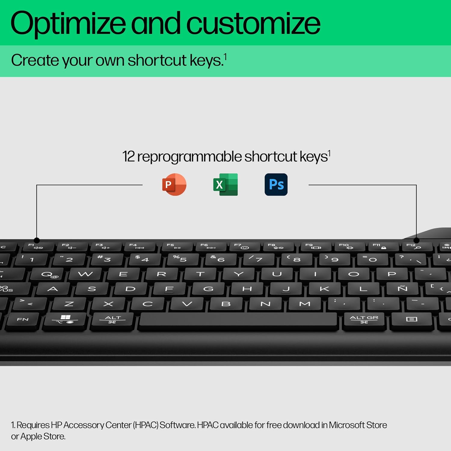 CREATE YOUR NEW FAVOURITE KEY: Go further with more flexibility, whether for office tasks or game play, program the F1-F12 keys to act as custom shortcuts, or automate difficult keystroke combinations to make all your moves in a fraction of the time, HP Accessory Centre software makes it easy to set and change commands on the fly