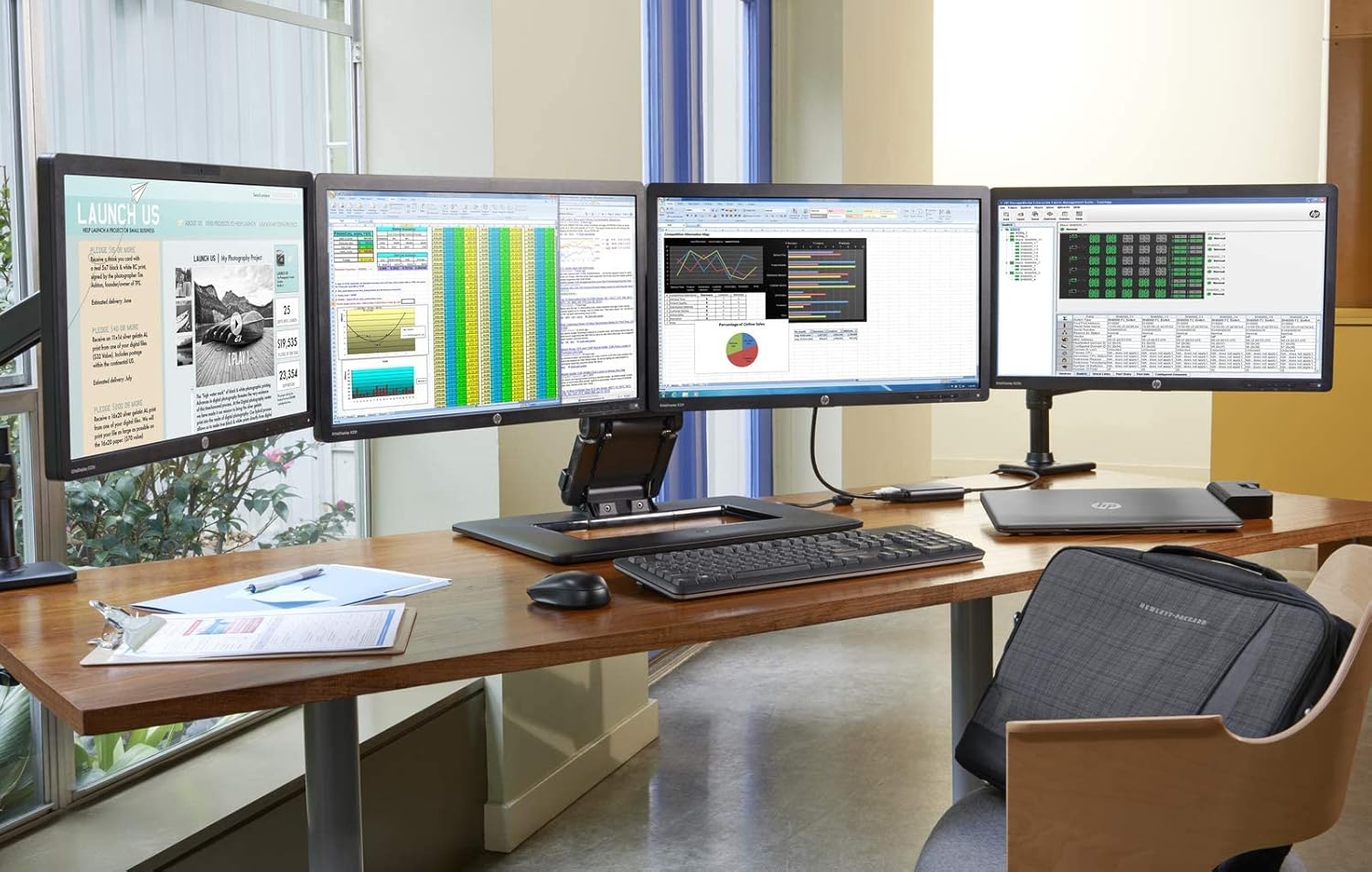 works great, very robust and quality product as you would expect from HP.keeps all desktop wires out of way and tidy.
