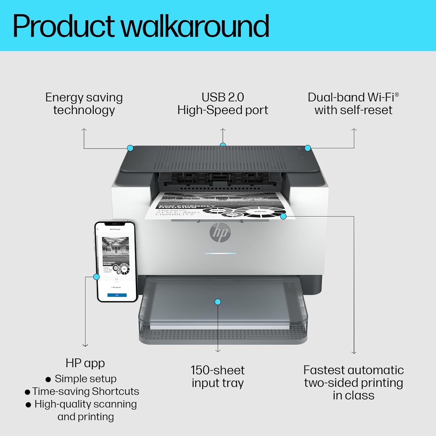 SMALL SIZE. BIG PERFORMANCE: A LaserJet so compact it can fit almost anywhere
