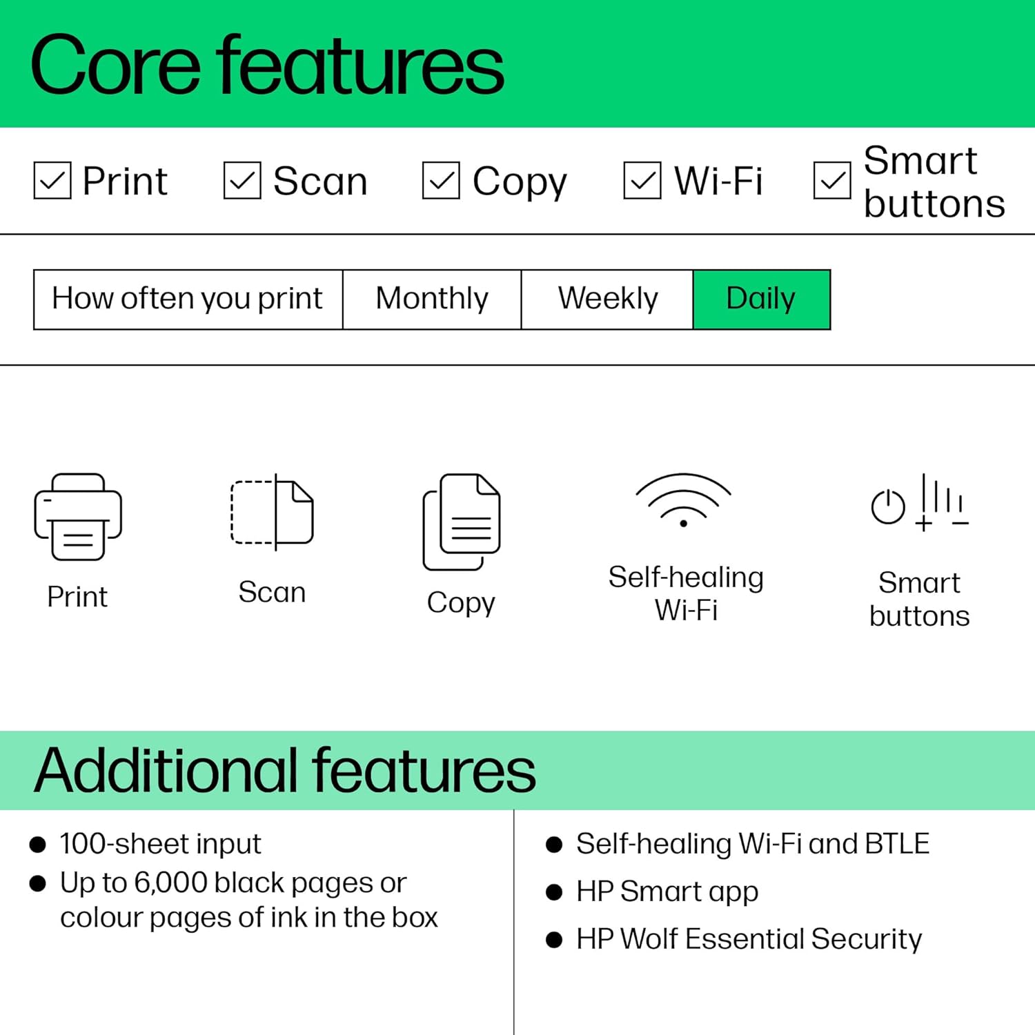 EASY TO USE – Smart-guided buttons illuminate to guide you through everyday print, scan and copy tasks