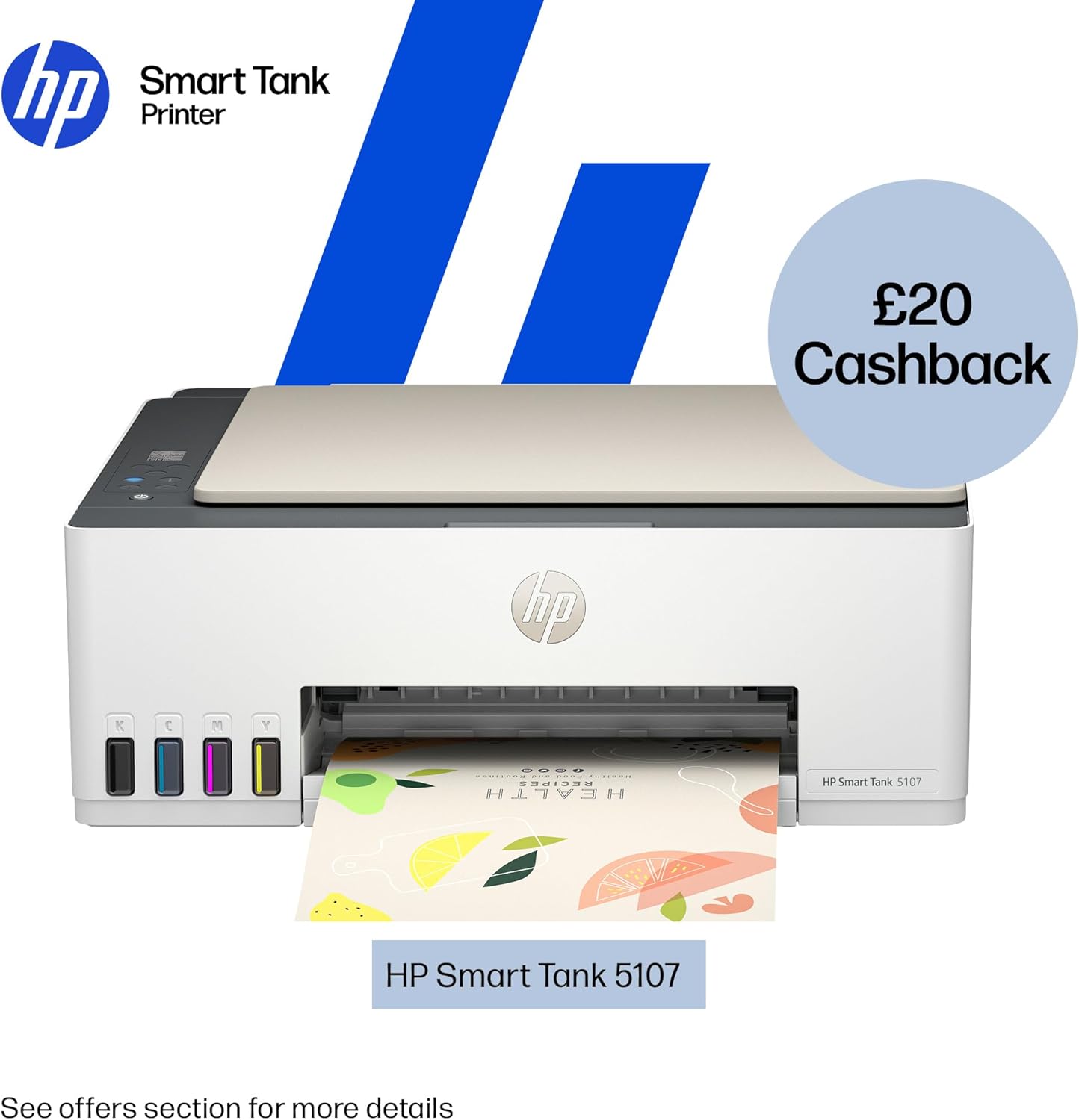 HP Smart Tank 5107 All in One Printer | Perfect for Home | Colour | Wireless | Print, Scan, Copy | Refillable | Includes up to 3 Years of Ink | Smart Buttons | Easy Setup | Reliable Wi-Fi
