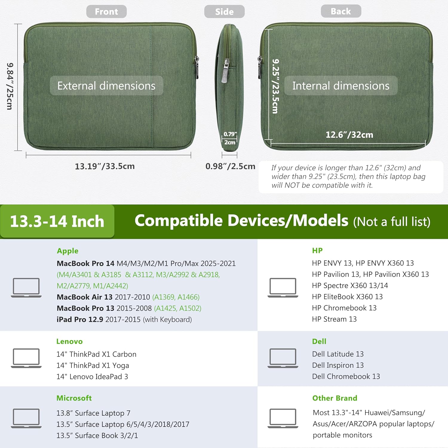 13 reviews for HYZUO 13.3-14 Inch Laptop Sleeve Bag Set for MacBook Pro 14 M4/M3/M2/M1, MacBook Air/Pro 13.3, 13.5″/13.8″ Surface Book/Laptop, NoteBook Case for 13.3″ HP Dell Lenovo Asus Acer, Grass Green