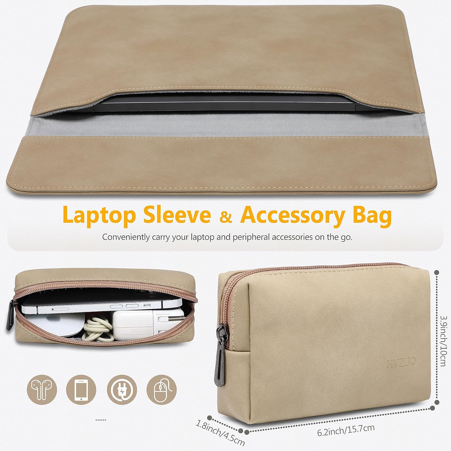 13 reviews for HYZUO 15-16 Inch Laptop Sleeve Bag for MacBook Pro 16, M4/M3/M2/M1 Pro/Max A3403 A3186 2025-2019, MacBook Pro 15 2015-2012, XPS 15, Faux Suede Leather Case with Accessory Bag, Khaki-H