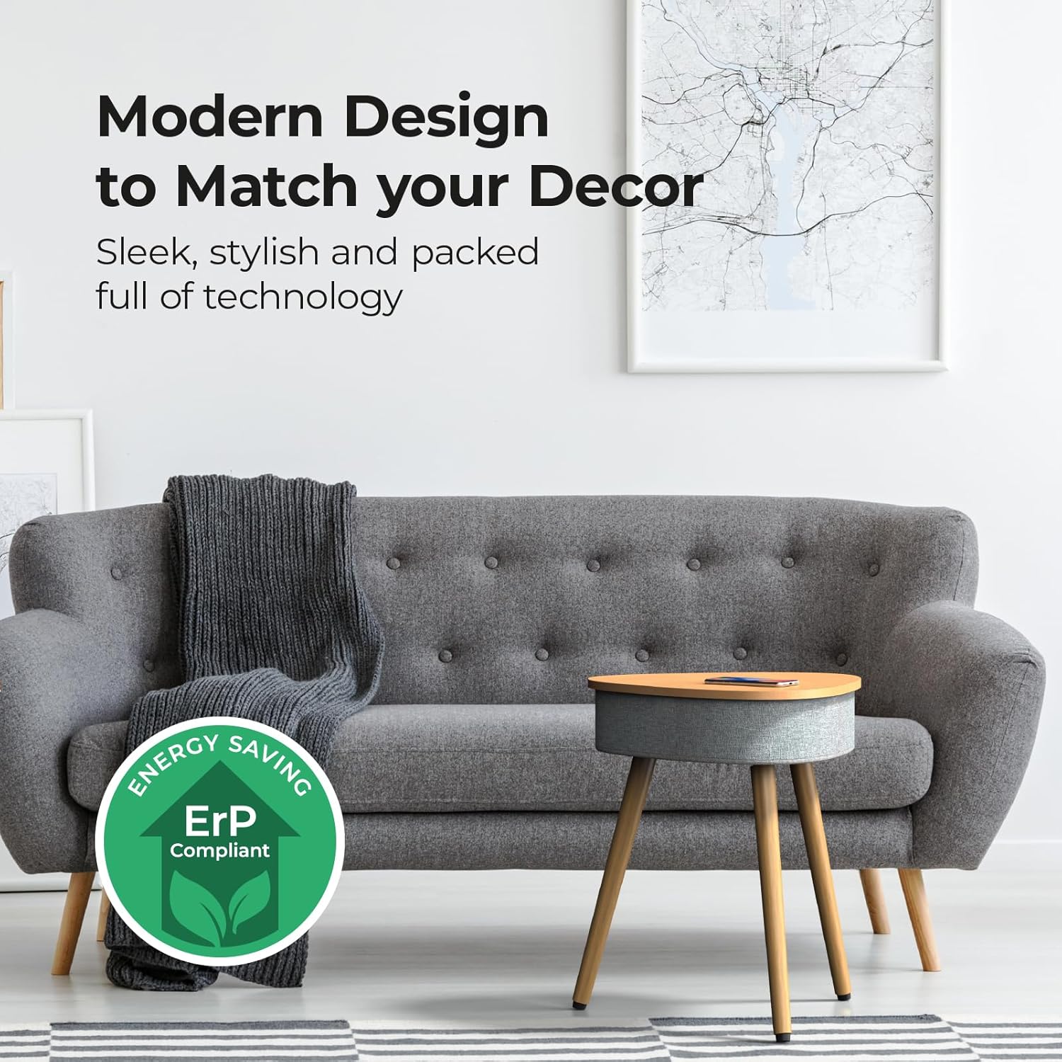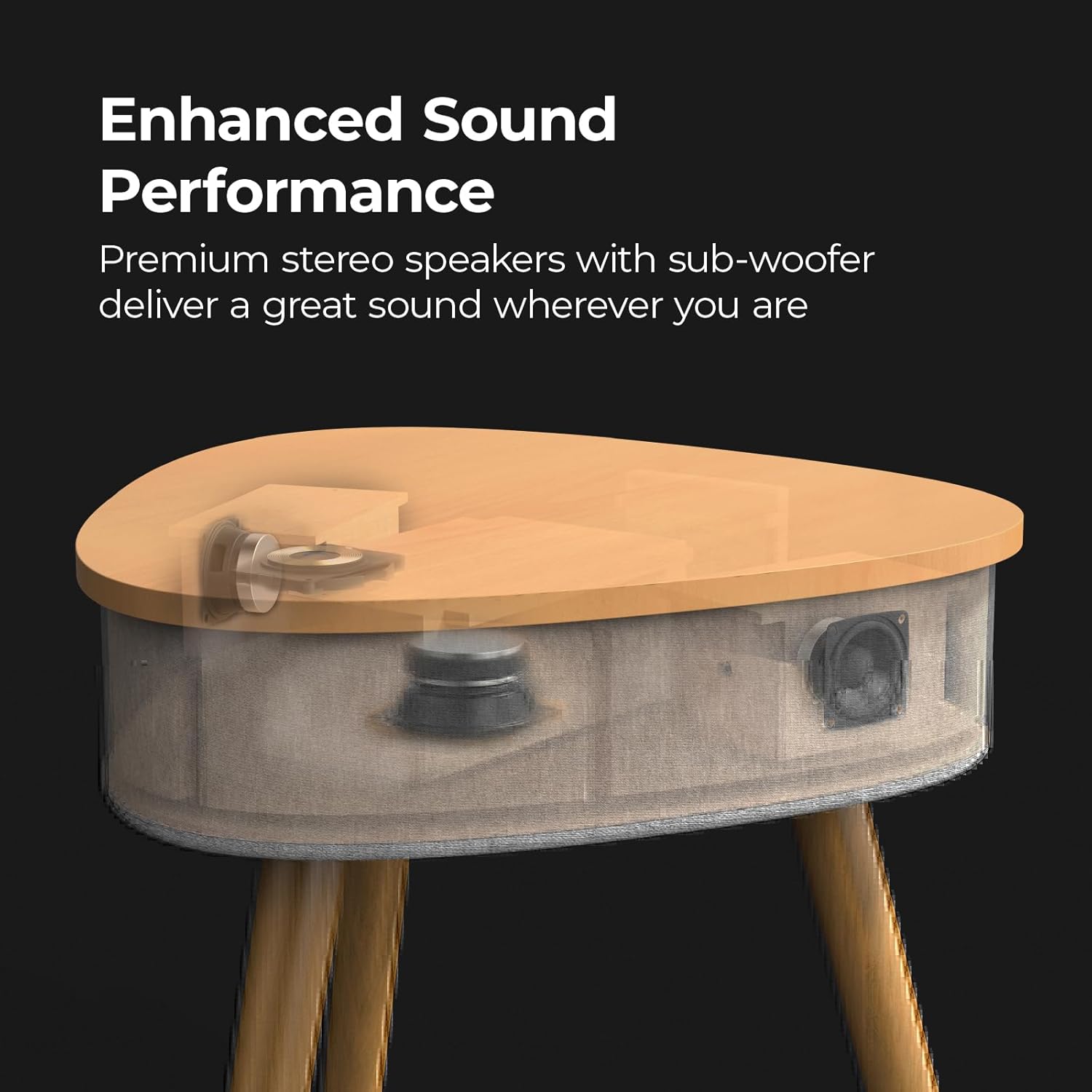 ✔️ BUILT IN RECHARGEABLE BATTERY: If you want to take the bluetooth speaker table outside to the garden, on a balcony or simply from room to room, the Smart Table has you covered. With a built in 4,000mAh battery, which delivers up to 4 hours of music playback, you can have a mobile charging and music station anywhere