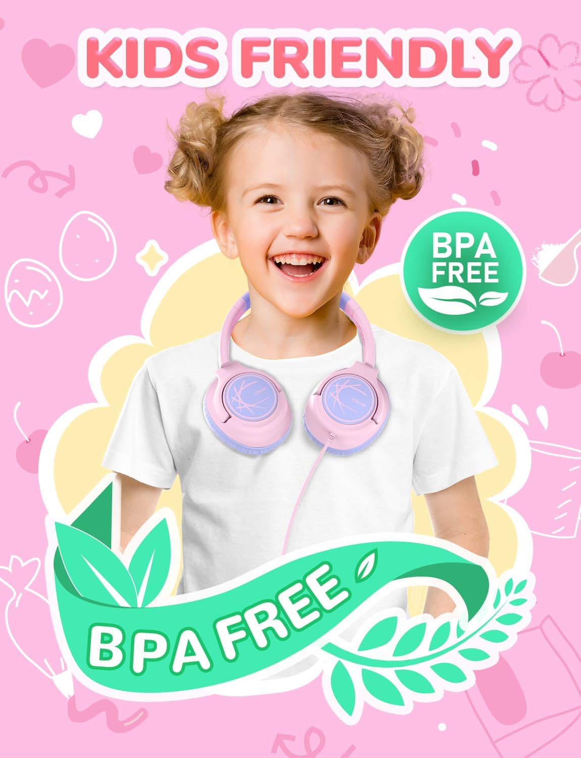 【Ultra-lightweight Design】: Weighted only 155g, these kids wired headphones are lightweight enough for comfy long-term wear! Better yet, the foldable design means you can store and carry them around with ease. Free from BPA and other harmful materials, these kids headphones for school are safe, sustainable, and kid-friendly!
