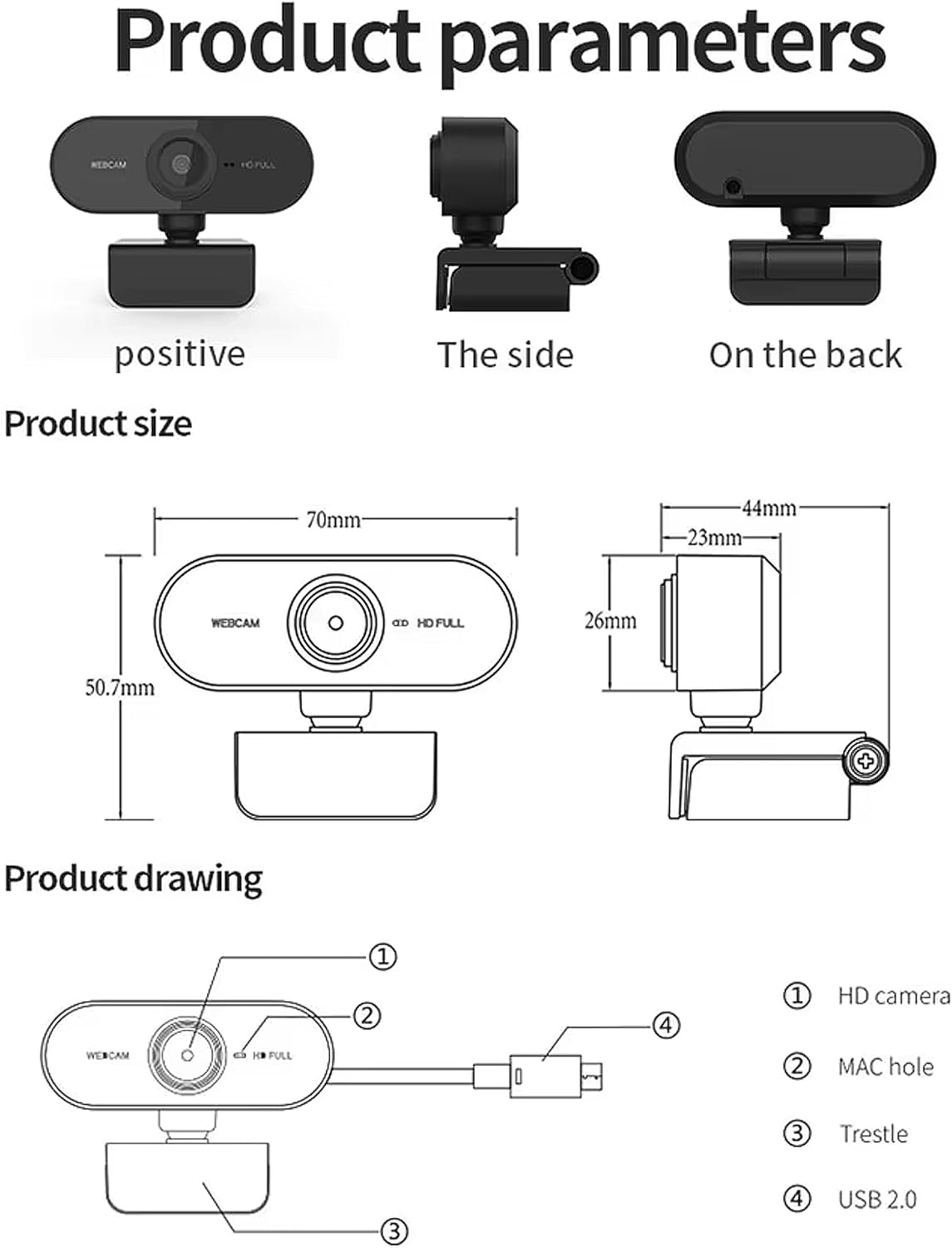 Easy to use USB Full HD Webcam with plug and play functionality. There is no need to install any additional drivers or software to use the webcam.