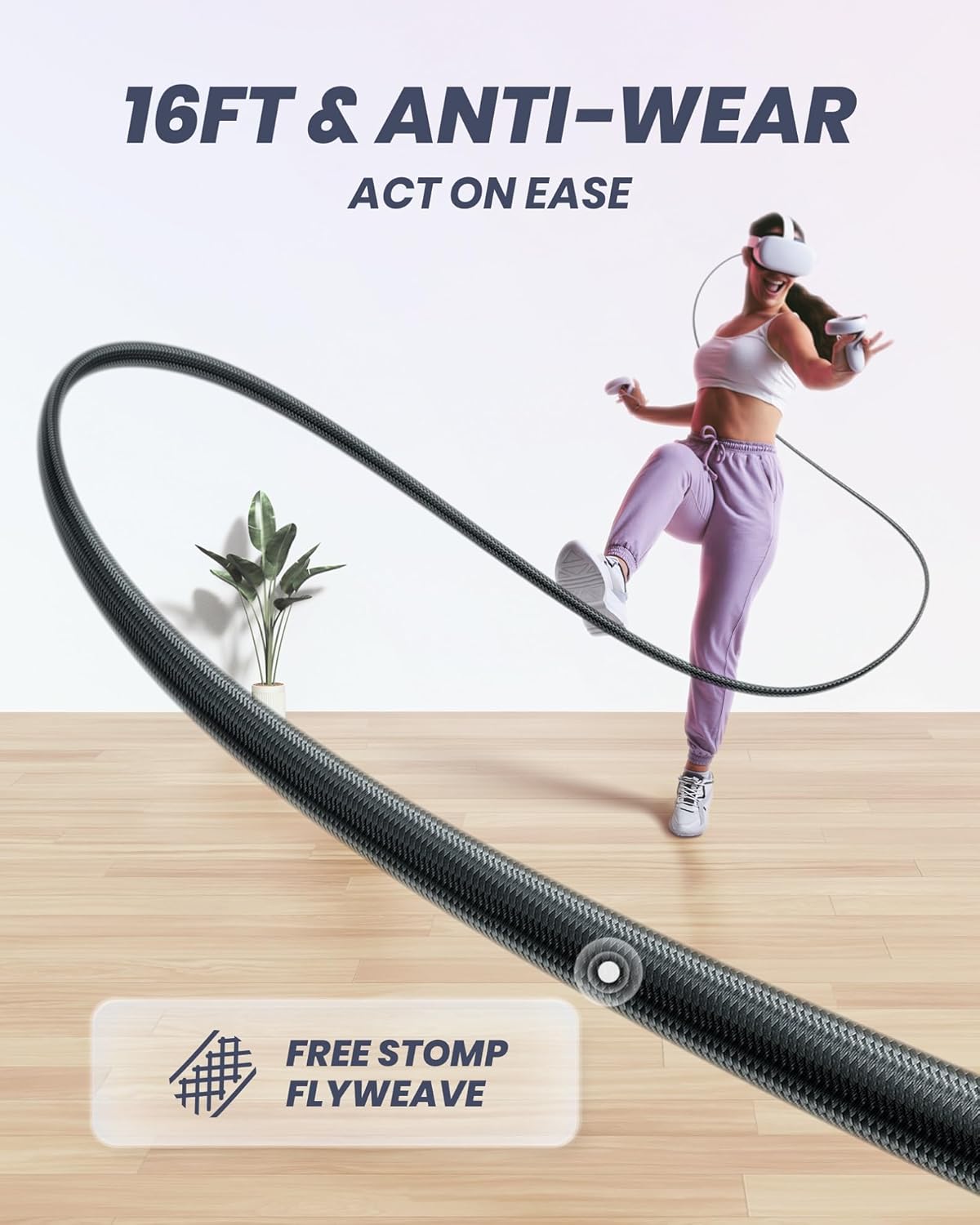 [16FT/5M for Wider Range of Motion] Reaching 16ft/5m long USB A to USB C cable, plus the anti-wear FLYWEAVE coat, never worry about your freedom of movement or if it is damaged by a stampede(Cable length slightly affects transfer speed).