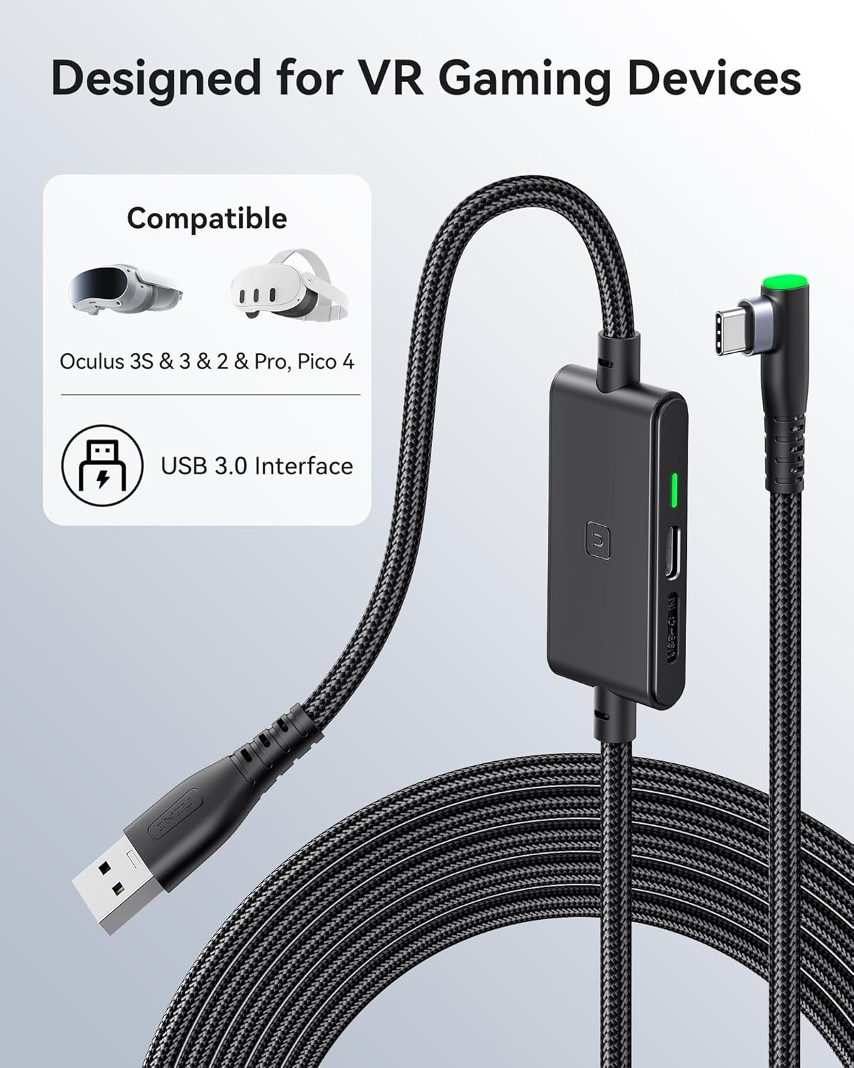 [SAFE Charging via SmartProtect2.0] Link cable built-in SmartProtect2.0 chip balances the electricity and data sync, controls the current for a safe battery range of around 78%, safe and sufficient power use is now in your Oculus.