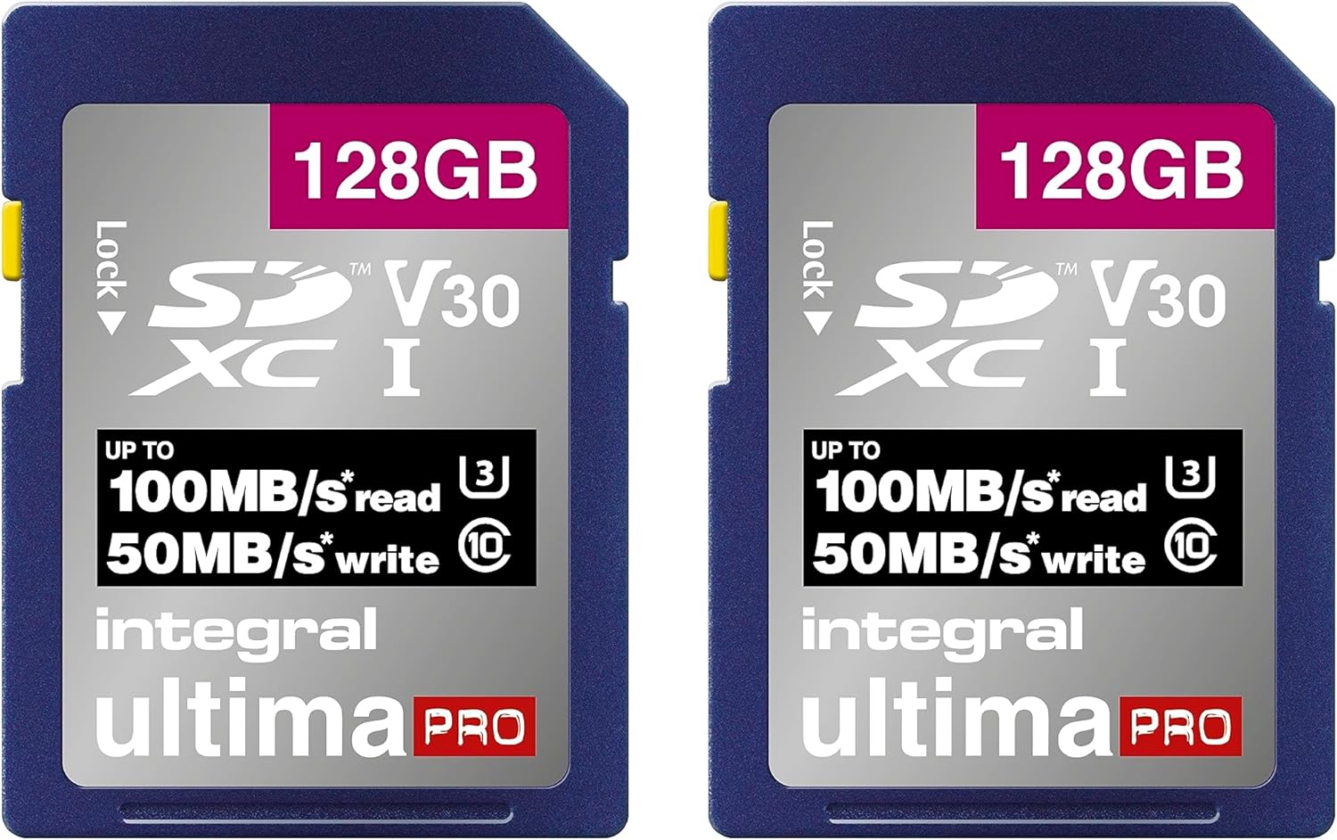 9 reviews for Integral 128GB SD Card 2-Pack 4K Ultra-HD Video Premium High Speed Memory Card SDXC Up to 100MB/s SDXC V50 UHS-I U3 Class 10 SD Memory Card
