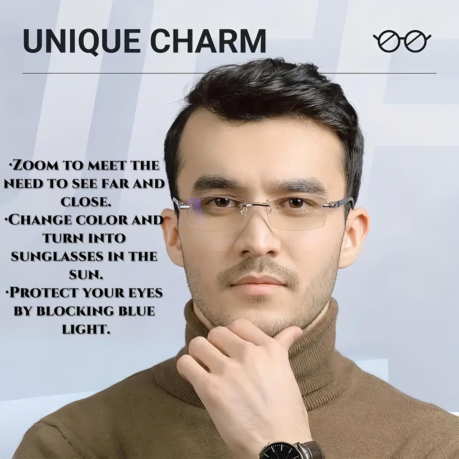 2 reviews for Intelligent Zoom Anti Blue Light Presbyopia Glasses,Photochromic Progressive Multifocus Transition Reading Glasses,Rimless Reading Glasses,Blue Light Glasses,Anti Glare Glasses,Varifocal Glasses Mens