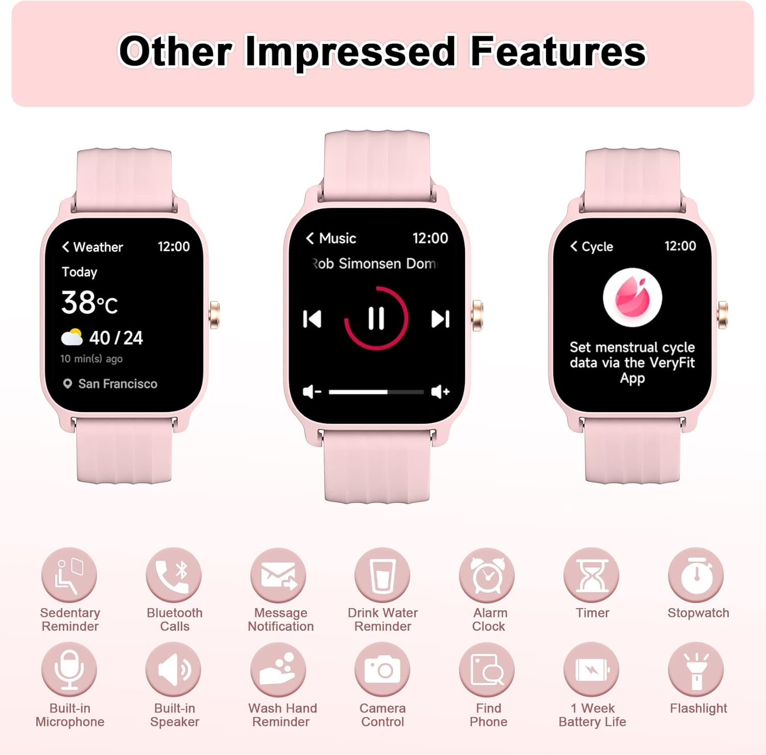 13 reviews for IOWODO Smart Watch for Women (Answer/Make Calls), Voice Assistant, 1.85″ Fitness Watch with SpO2 Heart Rate Sleep Monitor, 100 Sports, IP68 Waterproof Step Counter Smartwatch for iOS Android