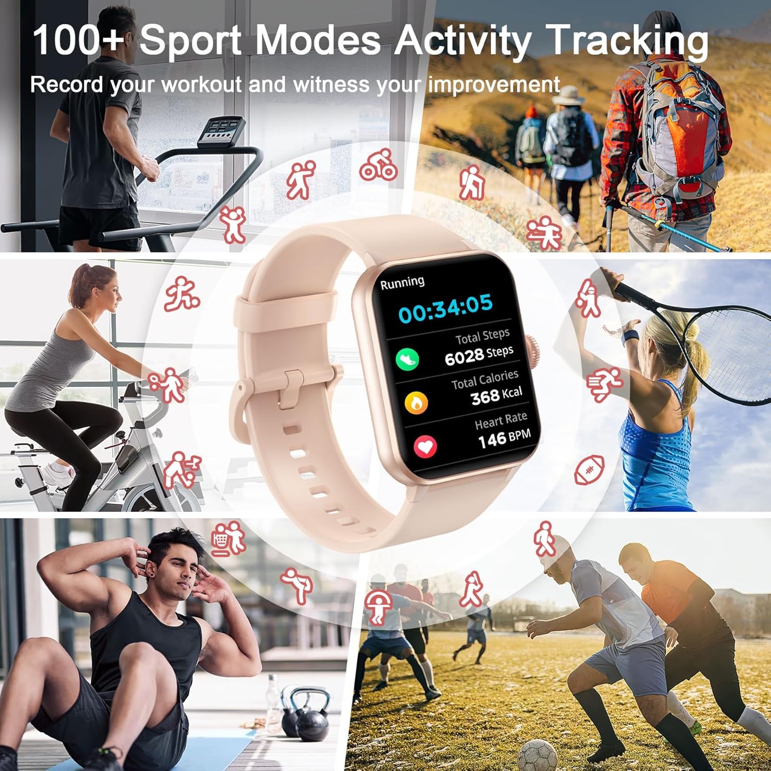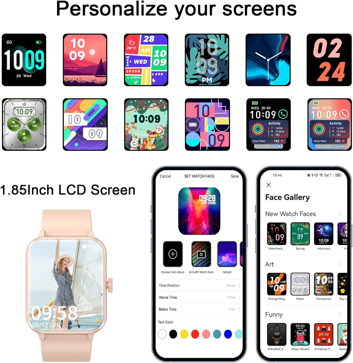 IOWODO Smart Watch for Women (Answer/Make Calls), Voice Assistant, 1.85″ Fitness Watch with SpO2 Heart Rate Sleep Monitor, 100 Sports, IP68 Waterproof Step Counter Smartwatch for iOS Android