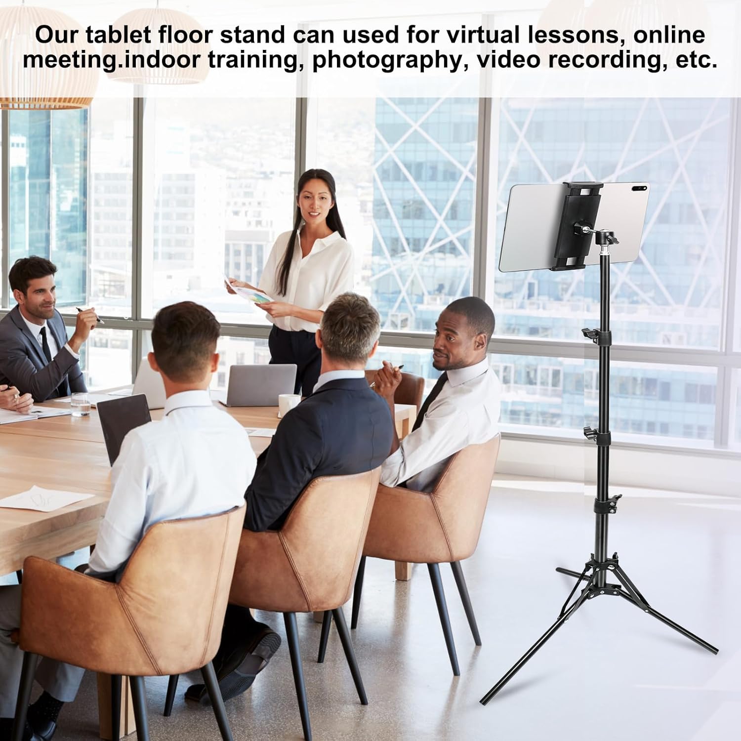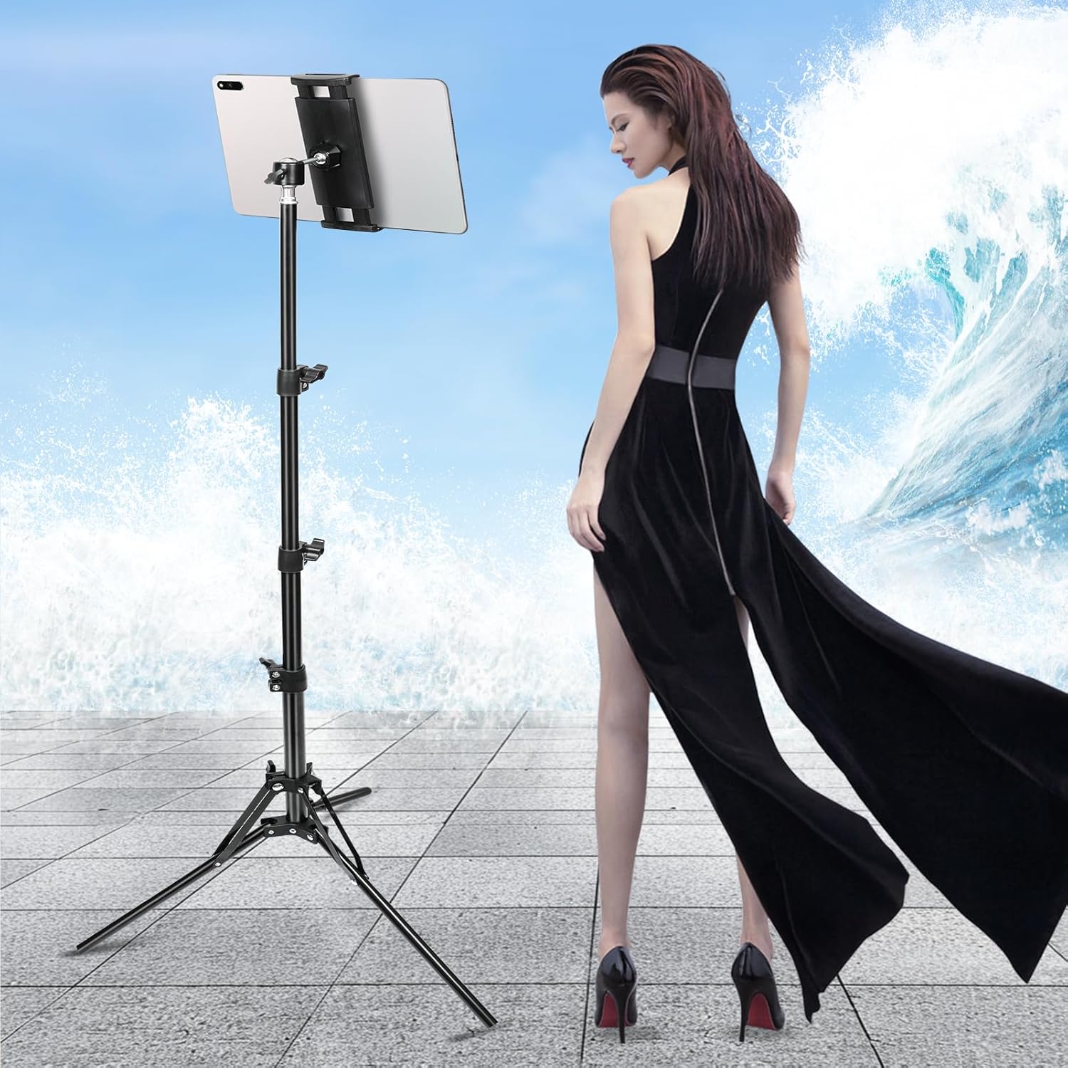 Perfect iPad Tripod Stand, with 65 inch Height Adjustable iPad Stand Holder & iPad Floor Stand with 360° Rotating iPad Tripod Mount for all tablets and phones.
