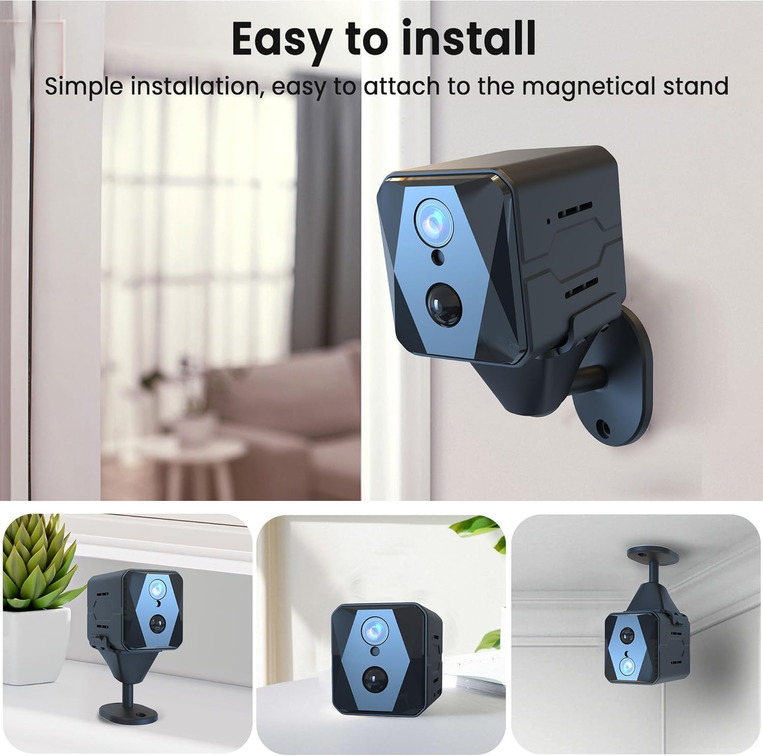 【Cloud & SD Storage】Supports up to 128G and financial encryption, your data is safely protected. This small camera with indoor/outdoor video in the event of device or memory card loss, cloud storage ensures your recorded files are never lost and can be accessed anytime.This Wireless security camera monitor households, pets,plant growth, housekeepers, and offices with ease.