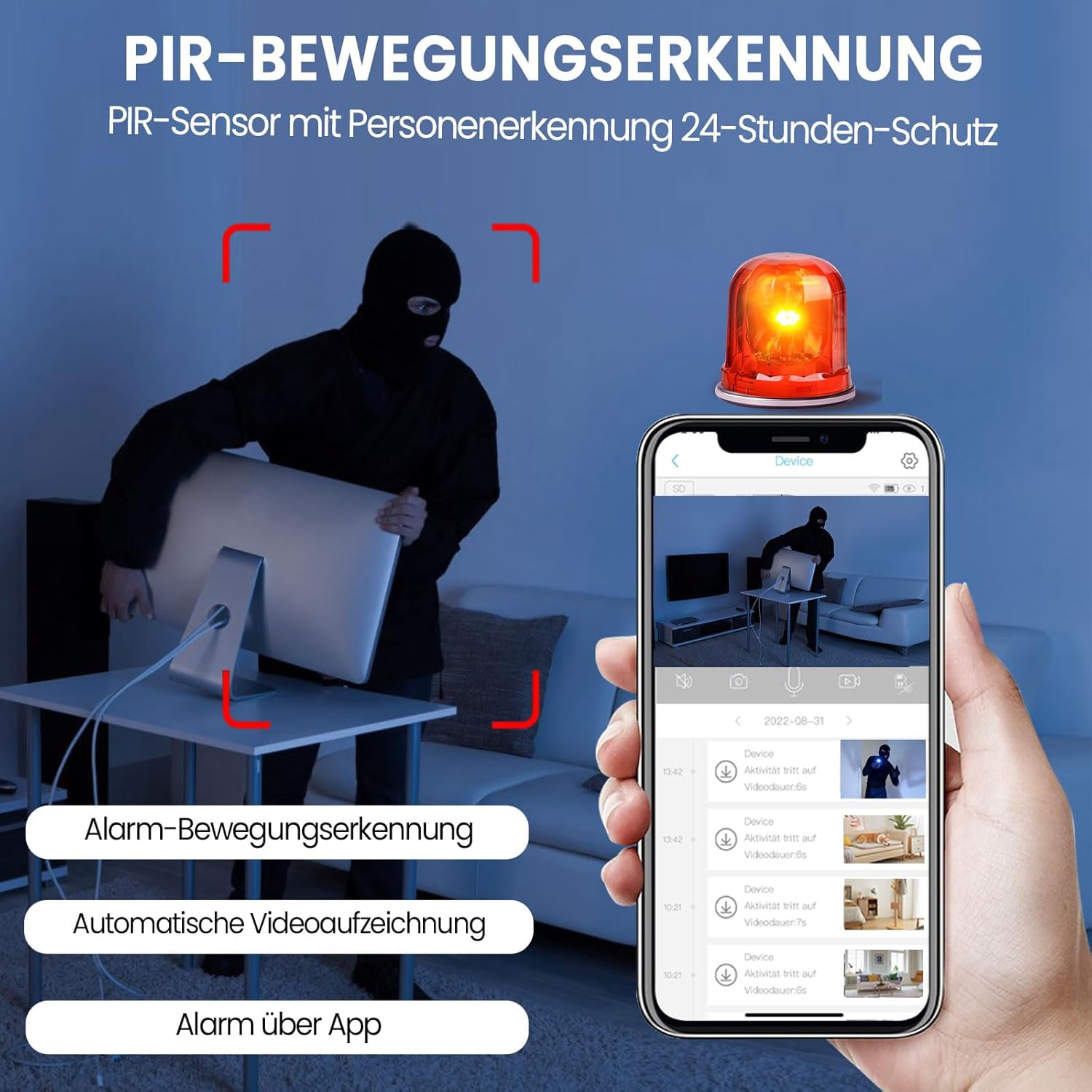 Intelligent motion detection, you automatically receive an alert if a stranger sneaks into your home
