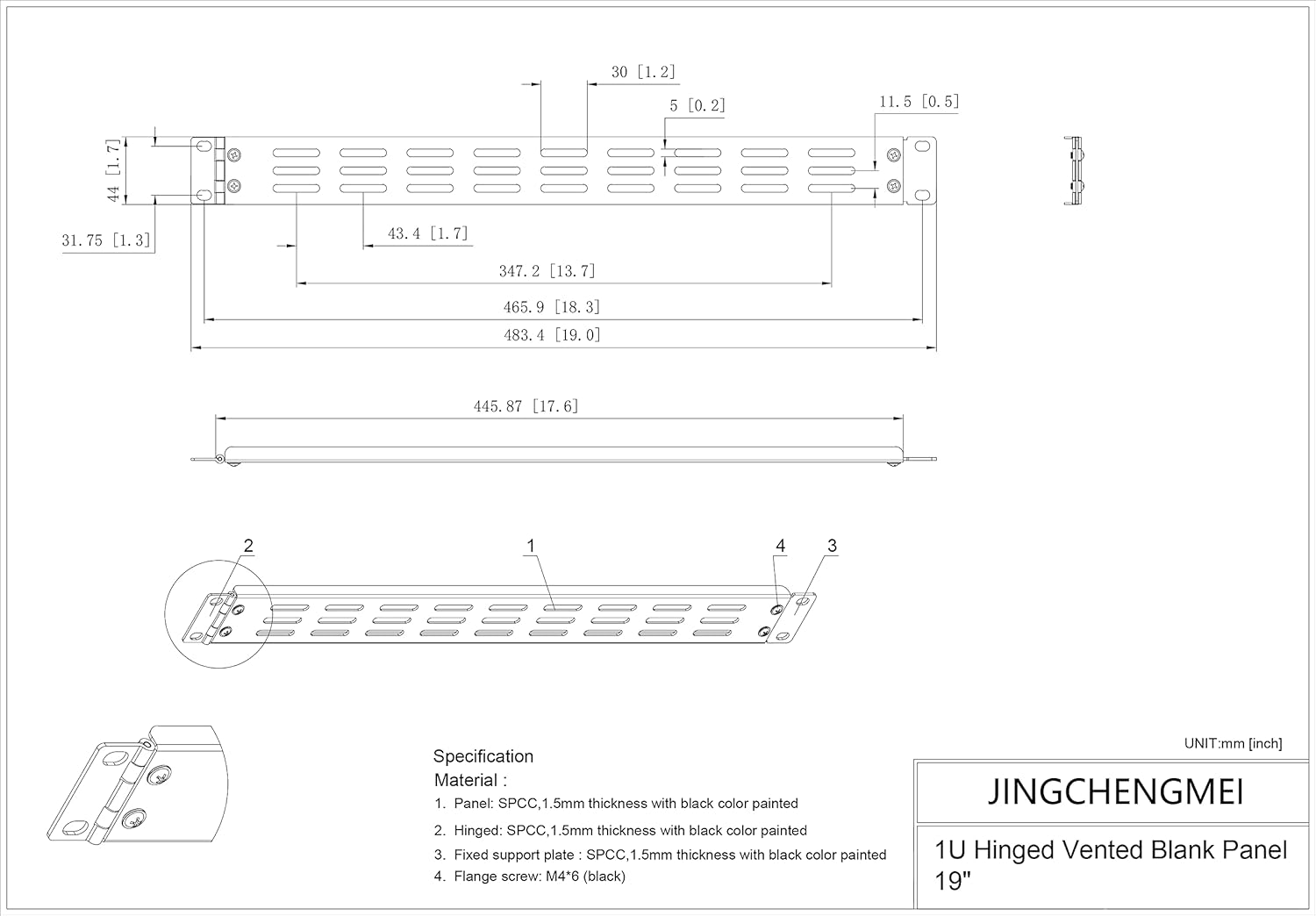 2 reviews for Jingchengmei 1U Hinged Blank Rackmount Panel Spacer – Metal Vented Blank Panel for 19 Inches Server Rack or Network Cabinet with Hinged Side (1UVBPHN, Black)