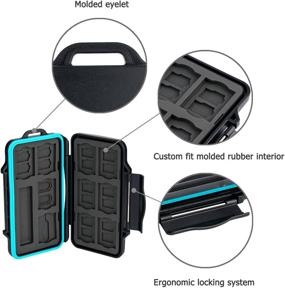 【Waterproof & Shockproof】The custom molded rubber interior has the property of shock absorption. Waterproof silicone sealing ring and durable resin clamp ensure memory cards are securely protected from weather, water, moisture, dust and anything that could damage your memory cards and data.