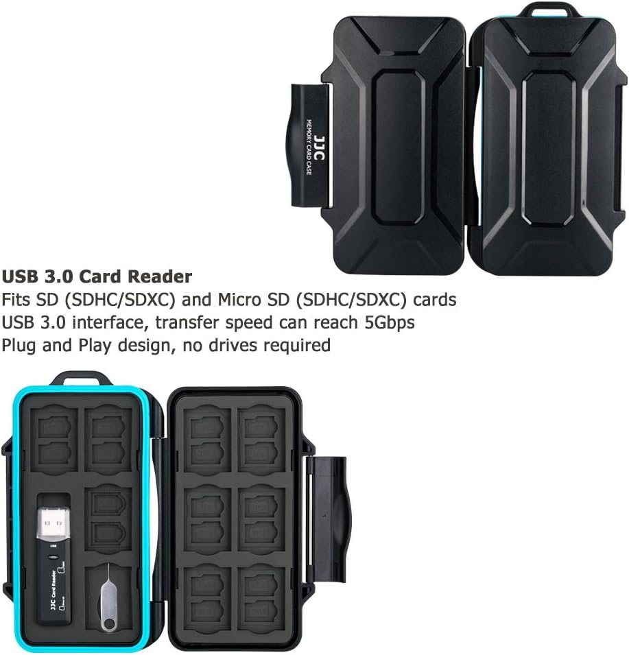 12 reviews for JJC Memory Card Case 30 Slots Carrying Water-Resistant Holder Storage SD SDHC SDXC Micro SD TF Cards with USB 3.0 Memory Card Reader for SD Micro SD & Carabiner & Card Removal Tool