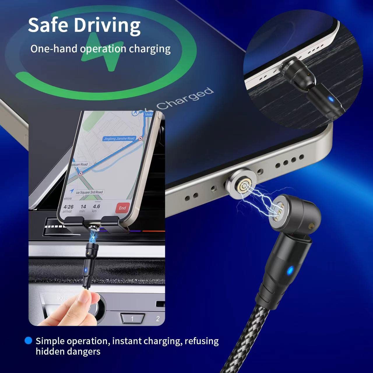 ★Practicality Super Fast Magnetic Charger Cable – Our magnetic usb c charging cable has a super strong magnet to prevent disconnection when charging, you only need to put the magnetic usb cable gently near the phone charging port, charging will automatically connect, for drivers It is very practical.