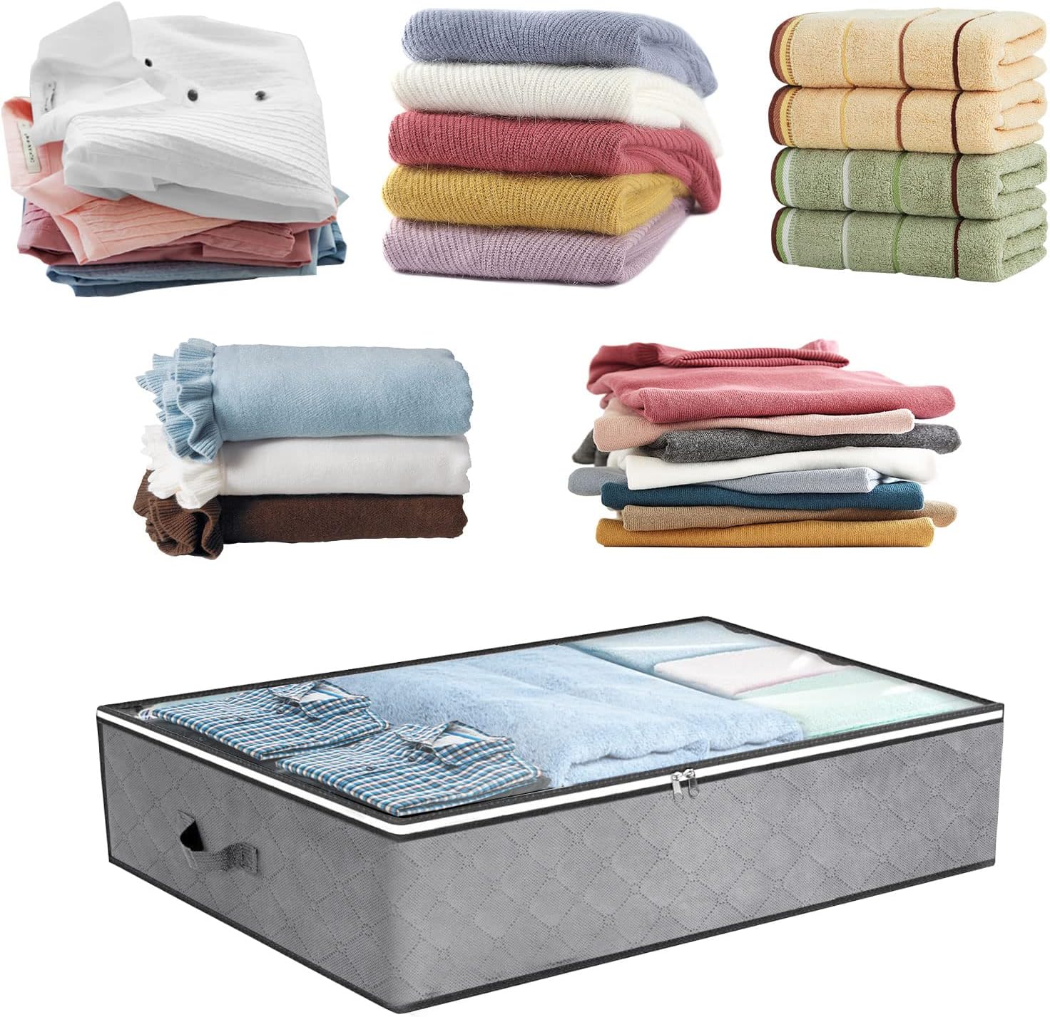 👍【STURDY HANDLE & ZIPPER】The under bed storage box equipped with handles and solid two-way zipper, making it more convenient for you to use. The handle is not easy to break, with strong load-bearing capacity. The zipper has excellent workmanship and long service life.