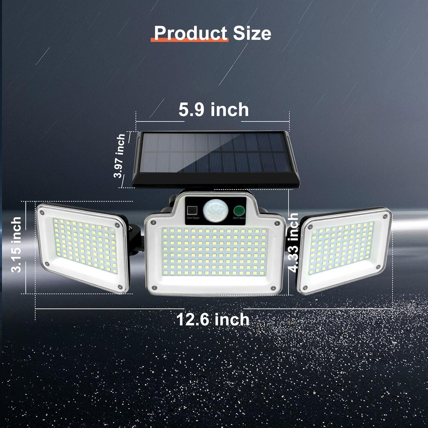 【Wide Adjustable Angle & Super Illuminance】Adjustable 3-head design allows for a wider range of illumination, up to 270°, and the included 280 LEDs provide brighter illumination on motion activation, ensuring excellent outdoor visibility around entrances, walkways and driveways.