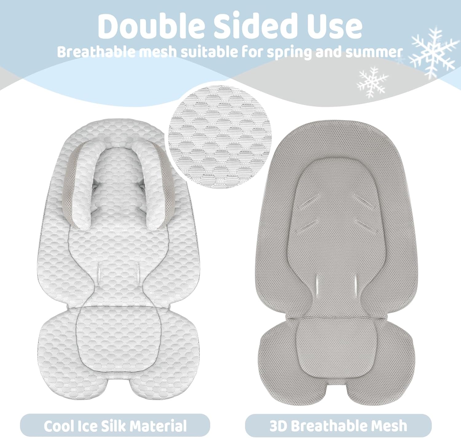 Double-Sided Design : Stay cool,the cooling pad is made of breathable 3D air mesh and durable ice silk material,our body support pillow is filled with comfortable, breathable polyester filling ,helps regulate your baby’s temperature, preventing overheating and sweat build-up during warm days,keep your baby safe and comfortable while seating in their car seat or stroller, machine washable