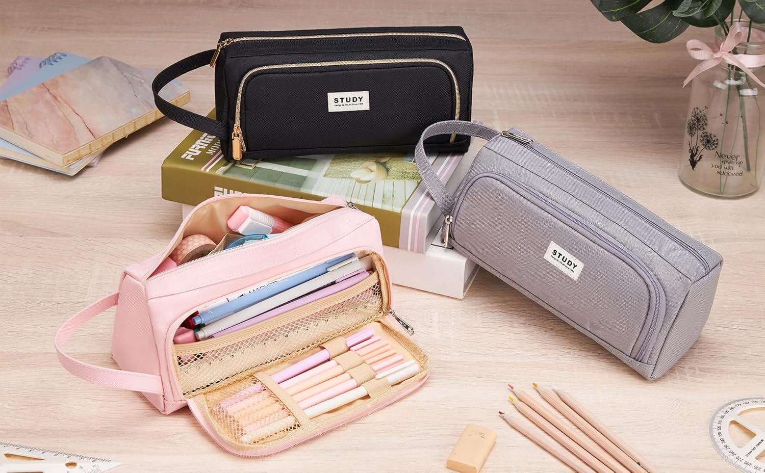 13 reviews for KALIDI Big Capacity Pencil Case 2 Compartment, Pen Pouch Bag Holder School Supplies Large Stationery Storage with Handle Middle Office Organizer for Girl Student Teens Adult, Black, One Size (TXBD26)