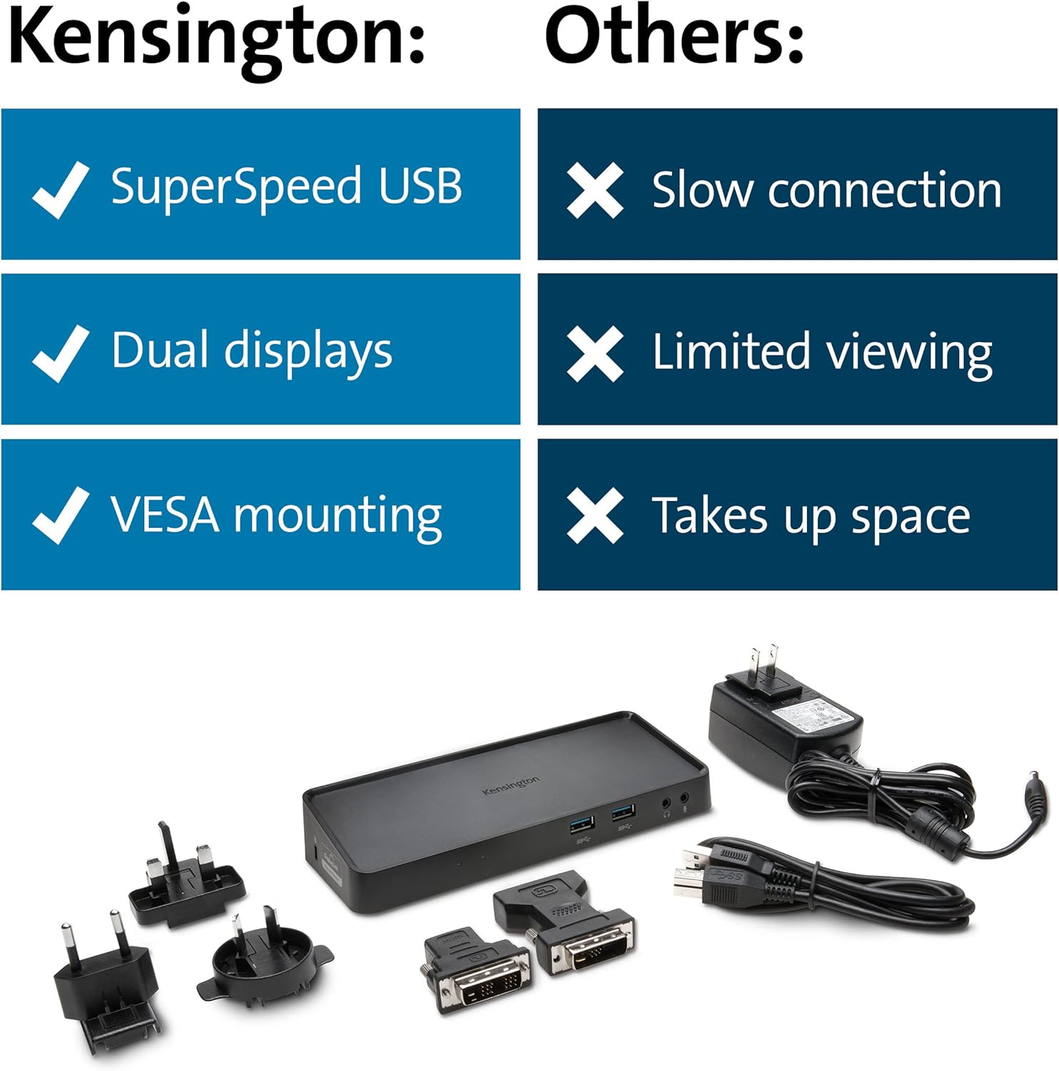 13 reviews for Kensington (SD3600) USB 3.0 Dual Display Universal Laptop Docking Station for Home Office, With HDMI, DVI outputs (includes DVI-VGA + DVI HDMI adapters)