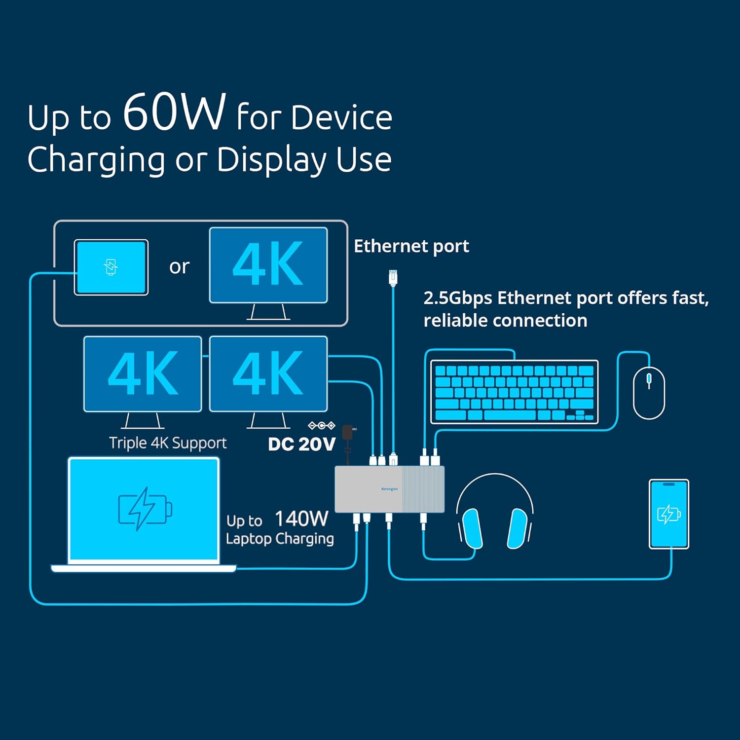 Universal Kensington Docking Station: An ideal plug and play Thunderbolt 5 dock, port and USB docking station supports the latest running Windows 11 or macOS devices