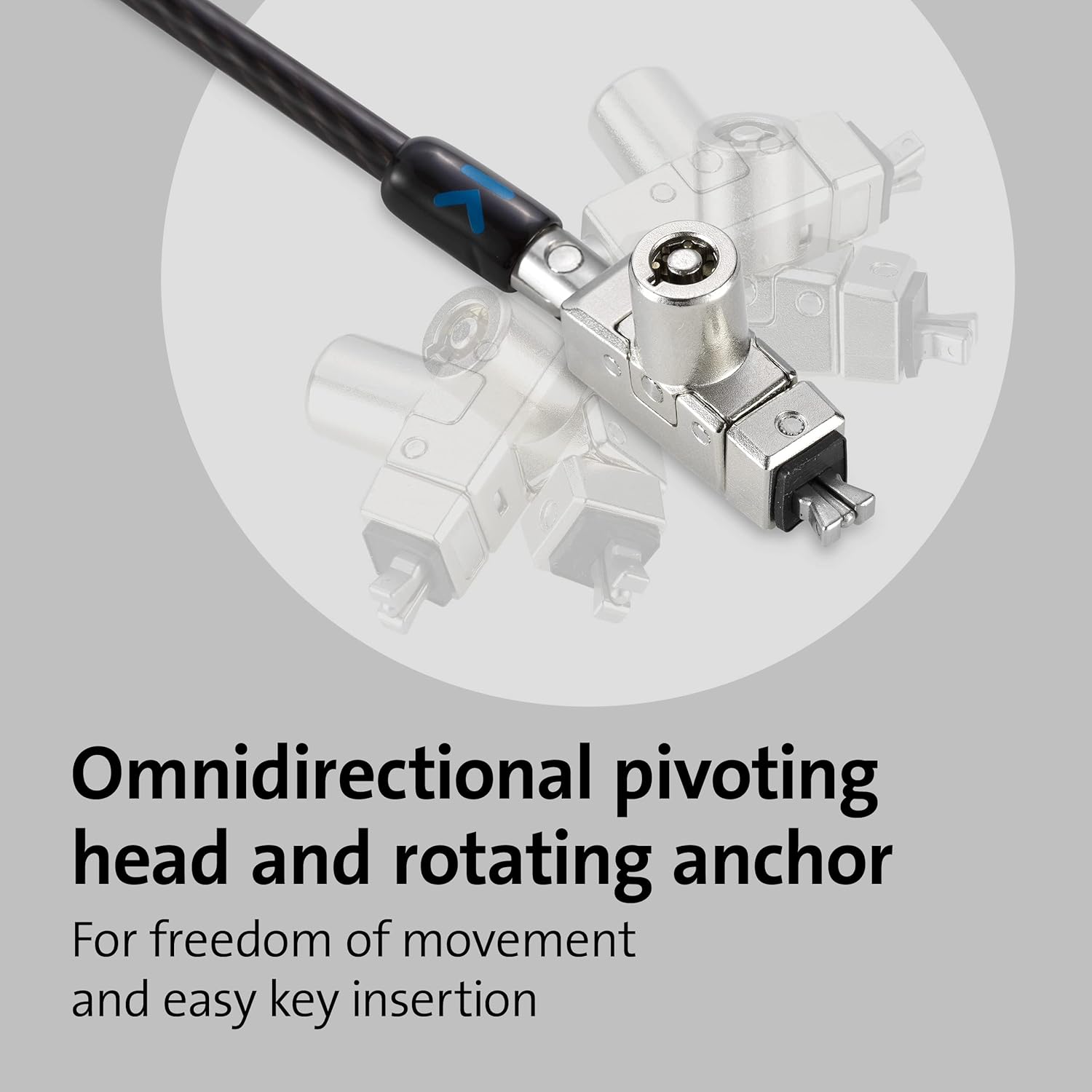 5mm Keying System: The lockable tether has a 1.8m (6’) anti-theft carbon steel cable with omnidirectional pivoting head and rotating anchor; Delivers the same level of cut-resistance as thicker cables