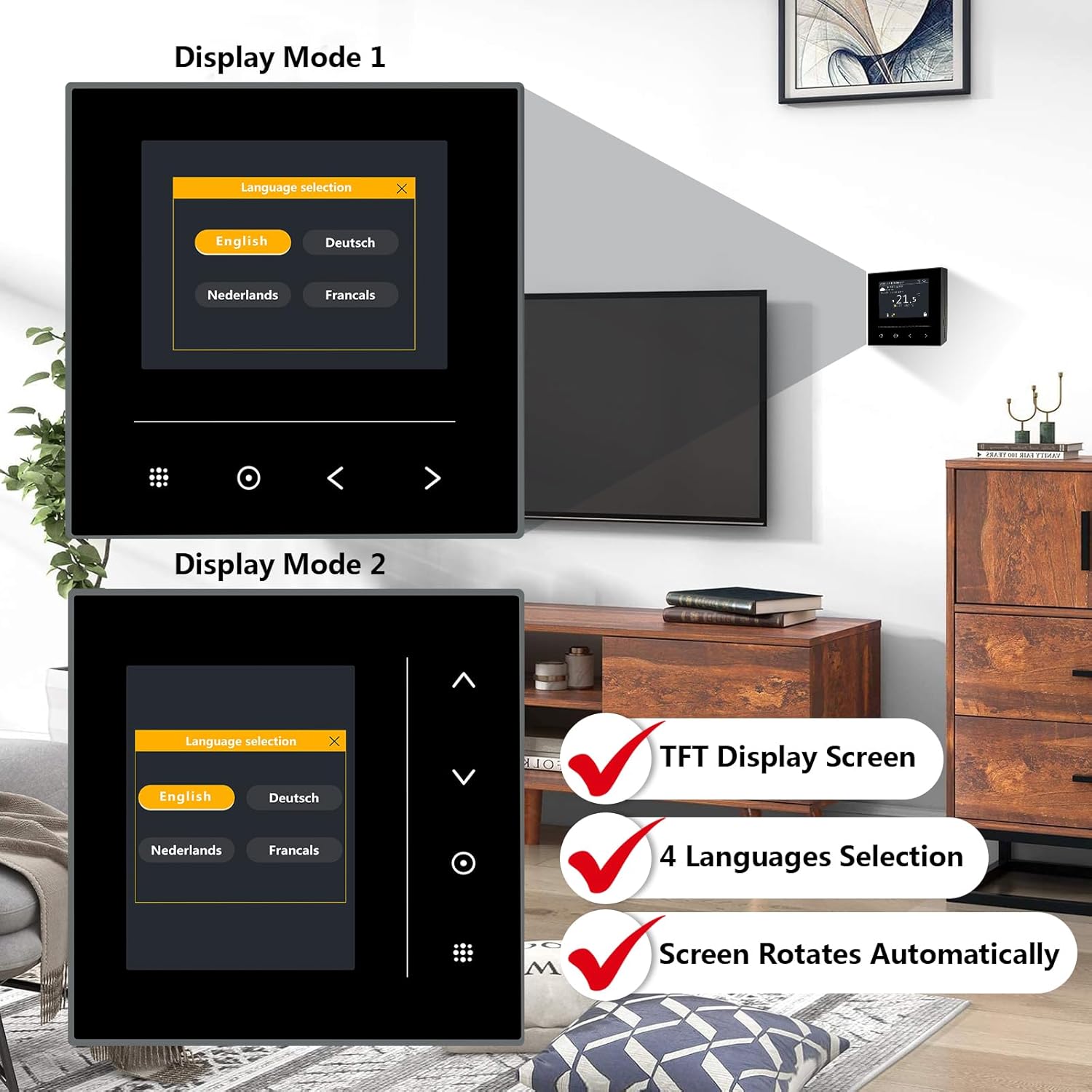 【Programmable HomeTthermostat】The wireless room thermostat for underfloor heating has a manual mode, a programming mode and a holiday mode. In programming mode, 5+2 days, 6+1 days and 7 days planning as well as 6 periods per day can be provided. In holiday mode, the thermostat maintains the set temperature until the end of the holiday.